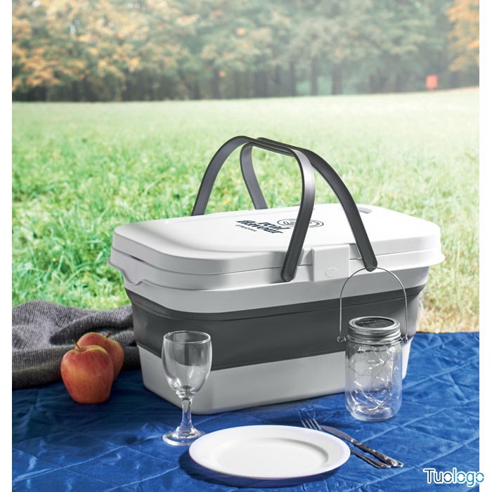 Cesto picnic Fozzano. Cestino da picnic pieghevole in silicone con piano in PP. Capacità: 16 L.Dimensioni: cm 46,5x28x21.