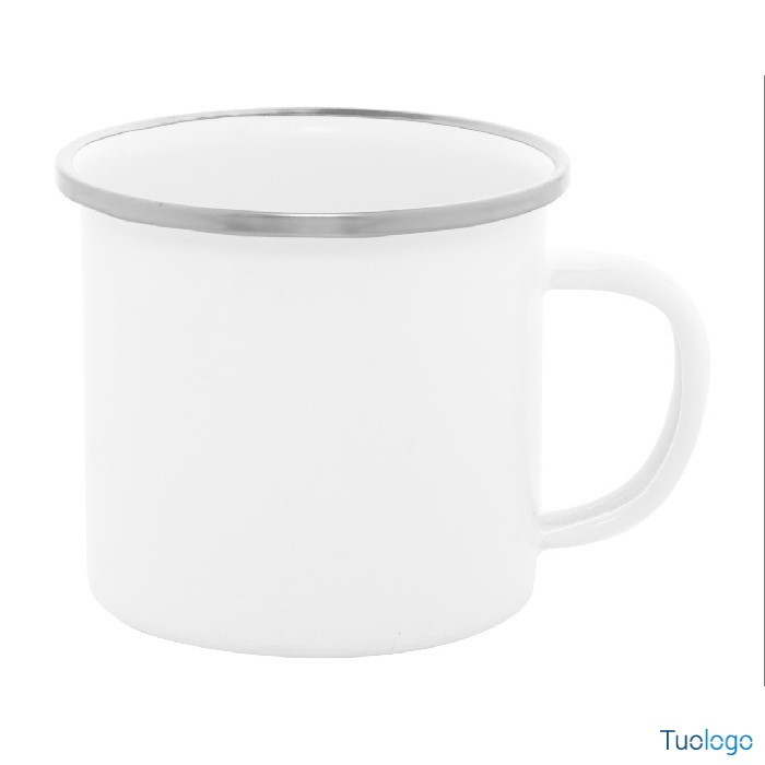 Tazza Vundosint. Tazza vintage da 200ml. per stampa in sublimazione in metallo smaltato con bordo in acciaio inox. Confezione in scatola di cartoncino bianco. Dimensioni: mm 78×70.