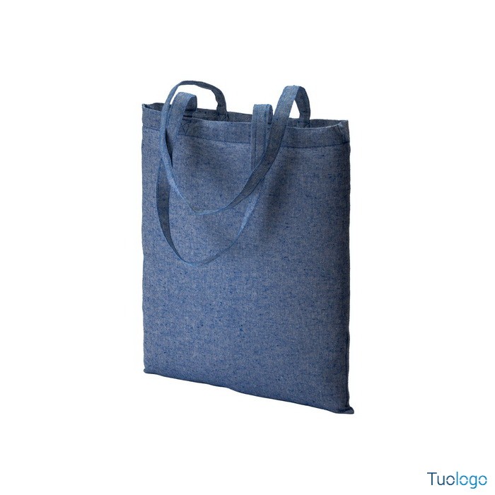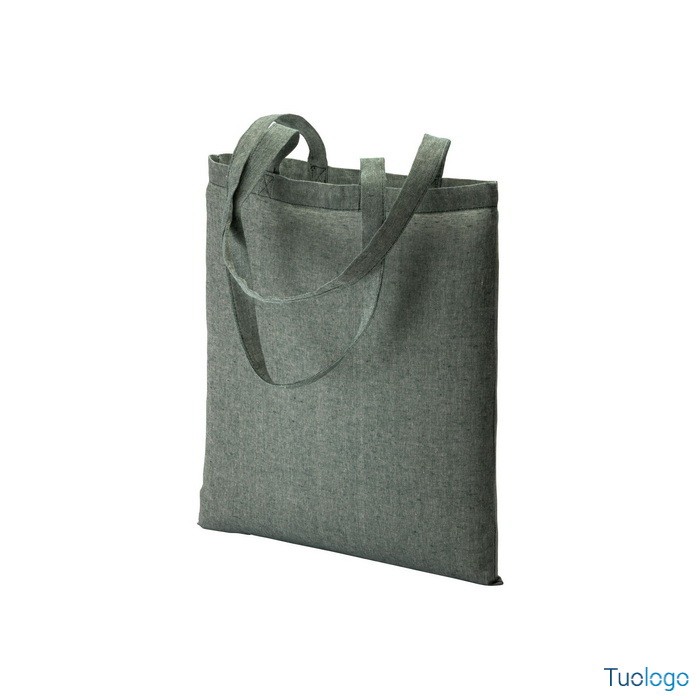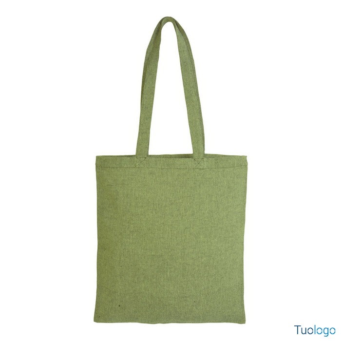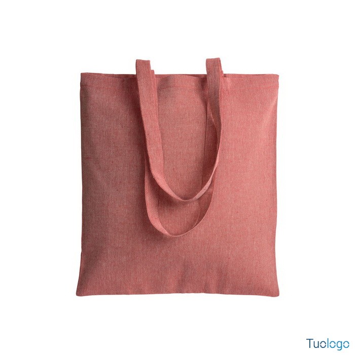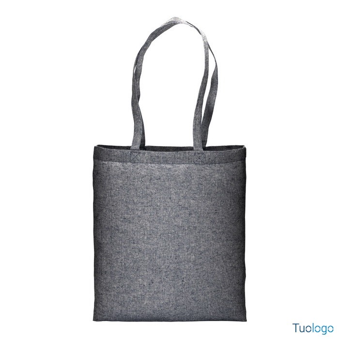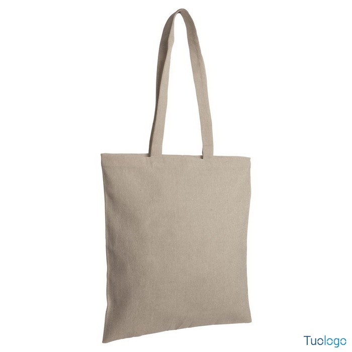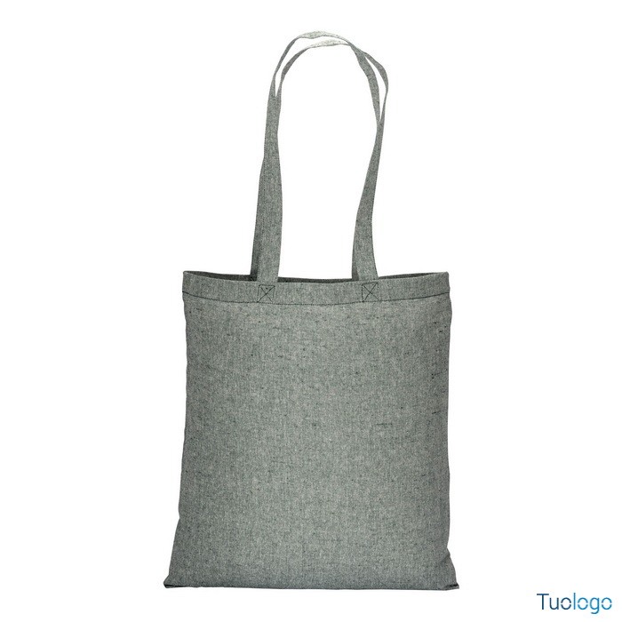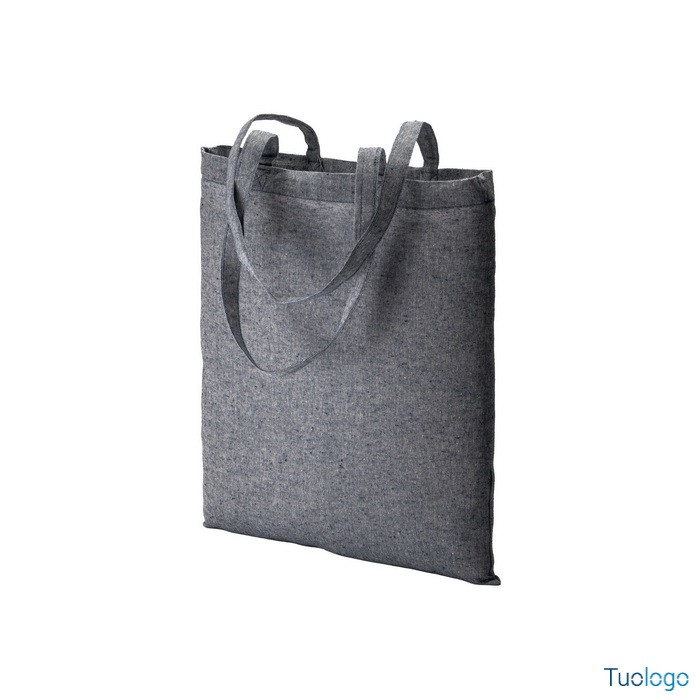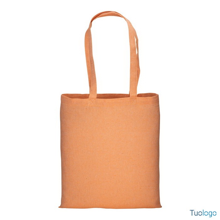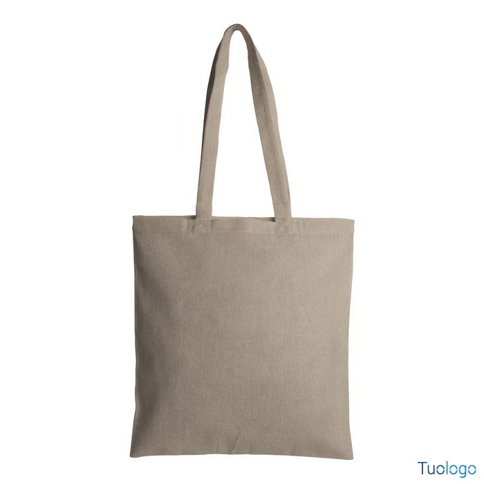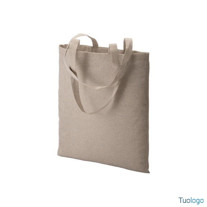 Shopper riciclata 150 gr Narbonne. In cotone riciclato effetto melange, manici lunghi. Peso 150 gr. Dimensioni: cm 38x42.