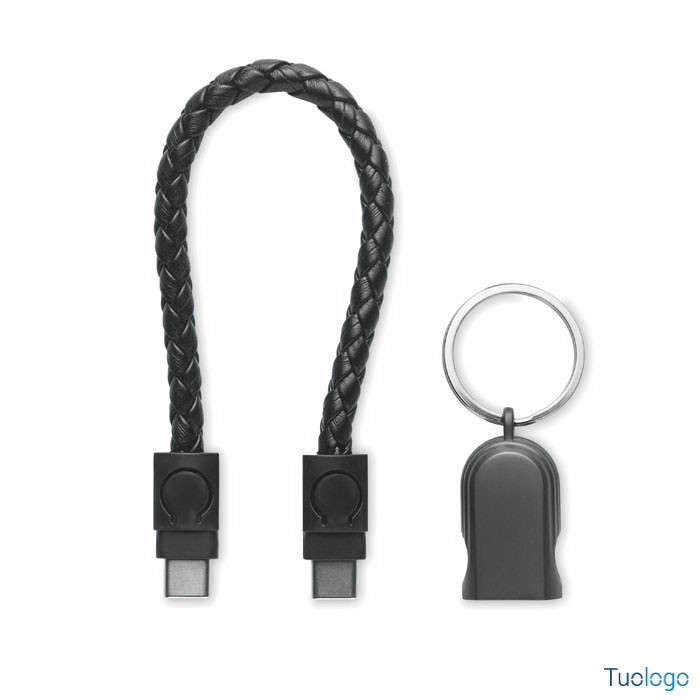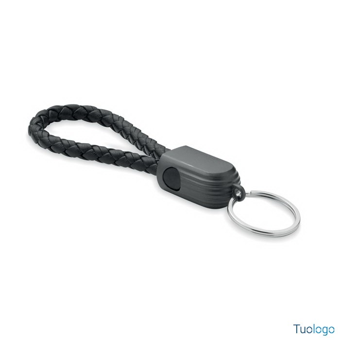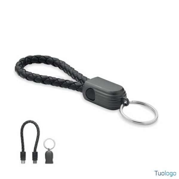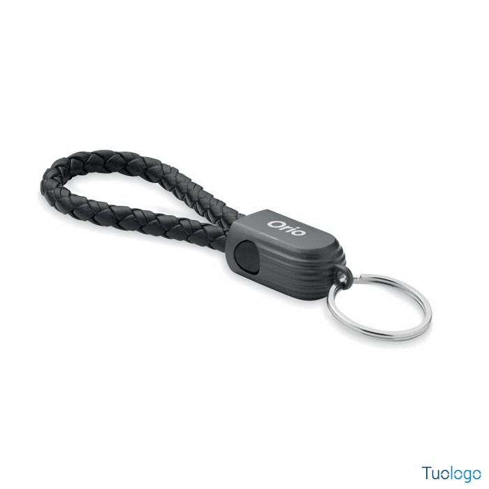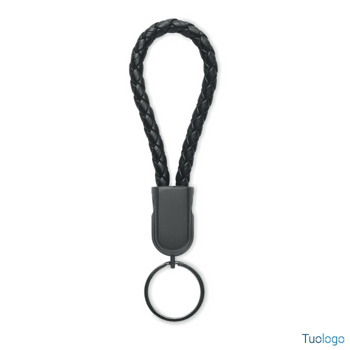 Anello portachiavi Caracol. Anello portachiavi con cavo di ricarica e trasferimento dati 60W in PU con dettaglio intrecciato in lega di zinco. Dimensioni: 3,2x10,3x1,4 cm