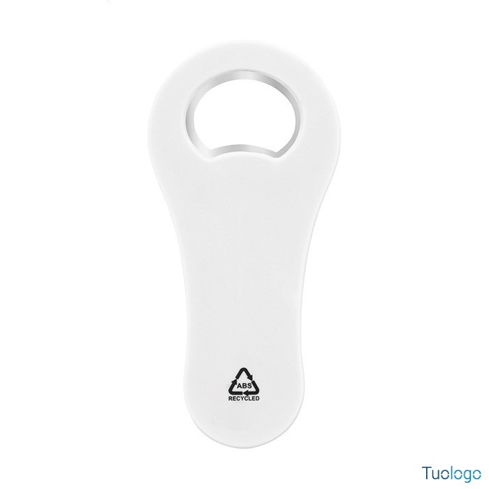 Apribottigilie in ABS con magnete Sonta. Apribottiglie in plastica ABS riciclata con magnete da frigorifero. Dimensioni: cm 10,6×5×0,5.