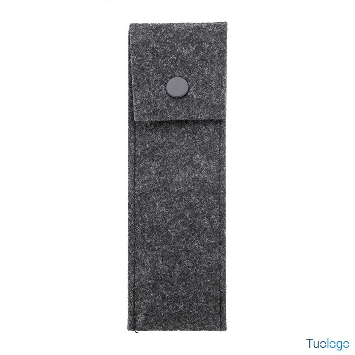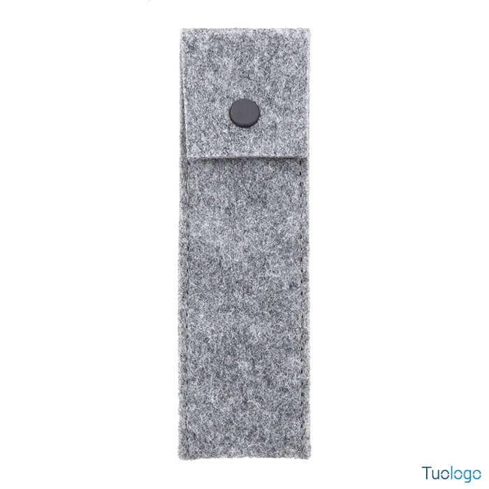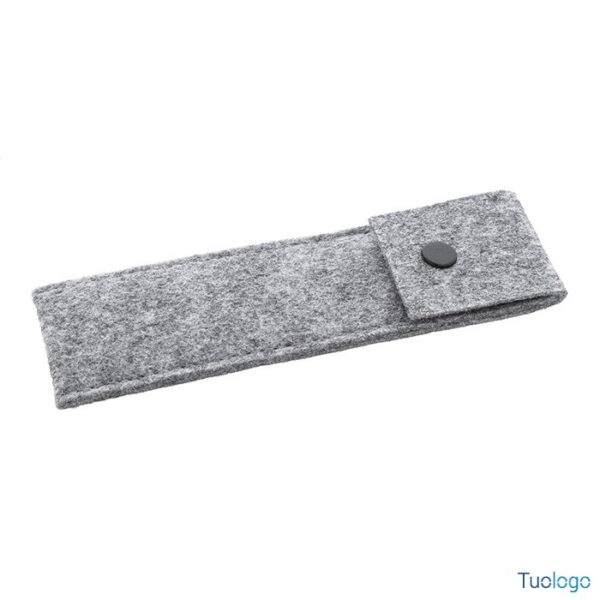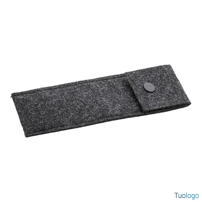 Astuccio Carlson. Astuccio in feltro RPET che può contenere 2 penne e chiusura a bottone. Dimensioni: cm 16,5x5x0,4.