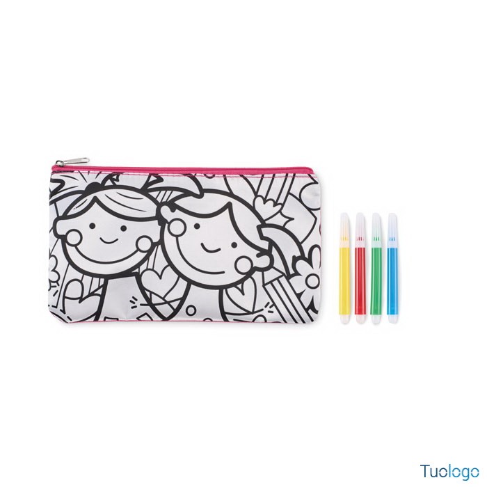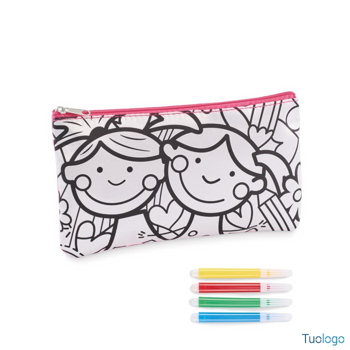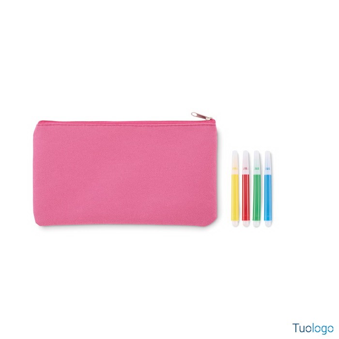 Astuccio da colorare con pennarelli Garcita. Astuccio per matite da colorare in poliestere 600D con 4 pennarelli.Dimensioni: cm 21x12.