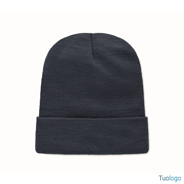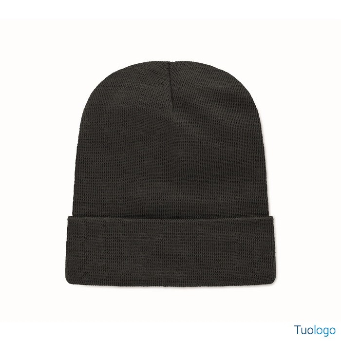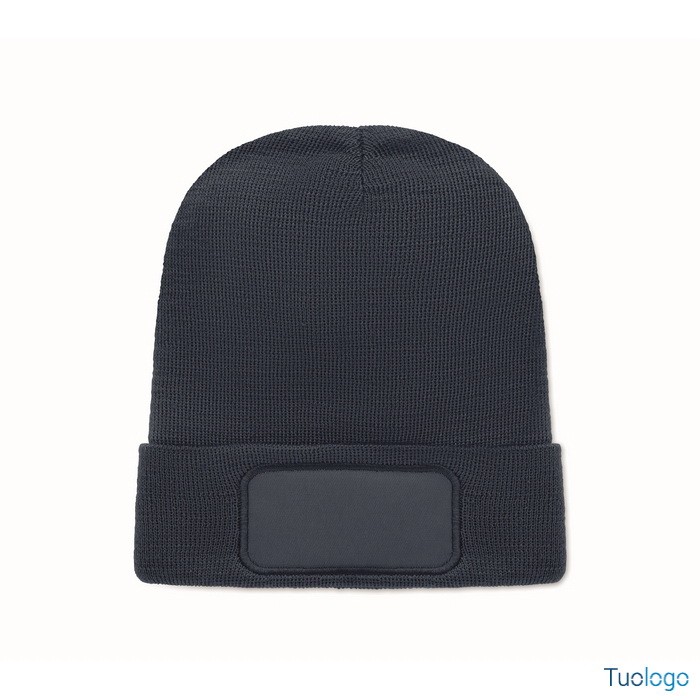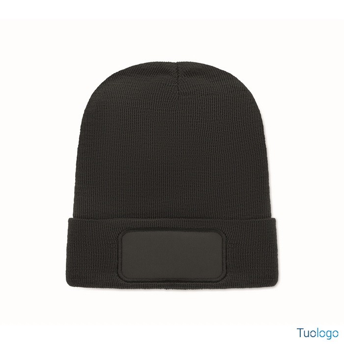 Berretto Nipcat. Berretto unisex lavorato a maglia in morbido poliestere RPET elasticizzato con polsino e toppa. Dimensioni: cm 21X23.