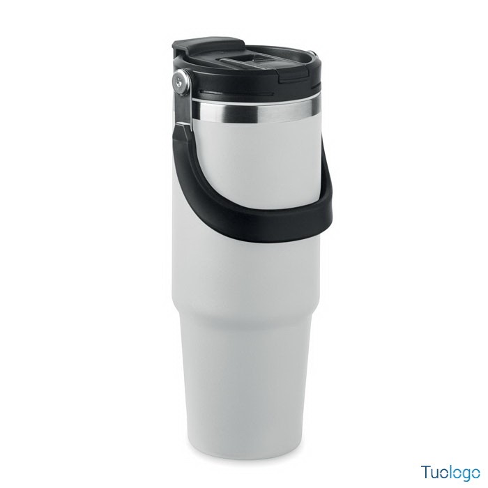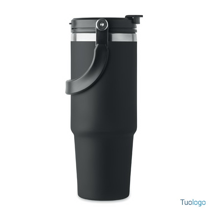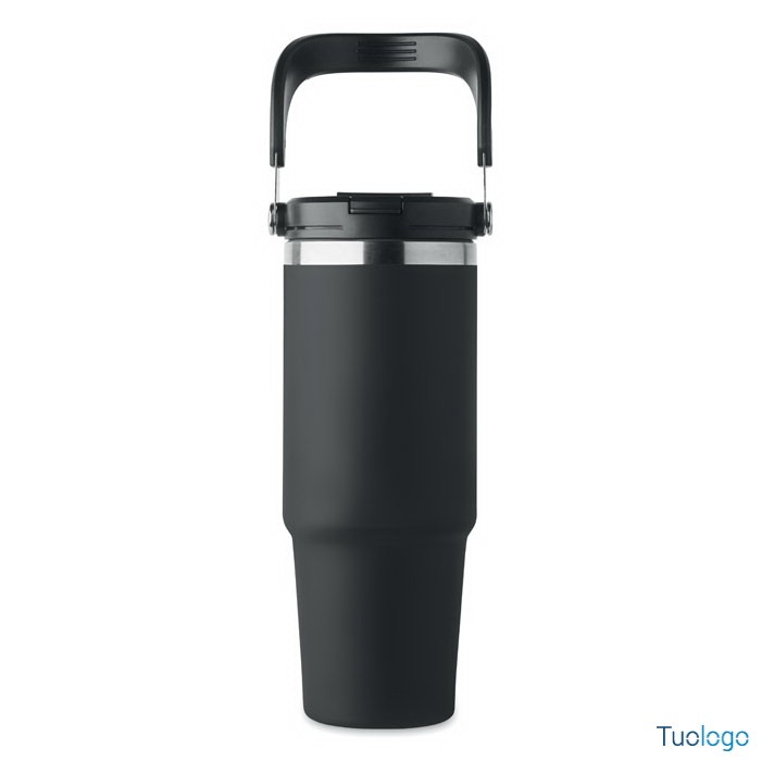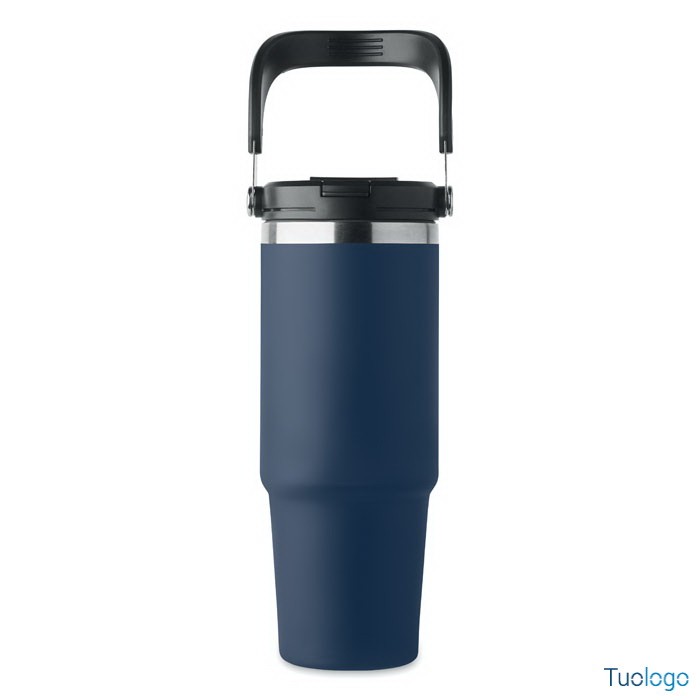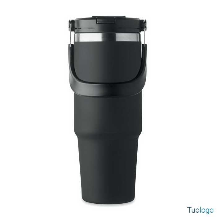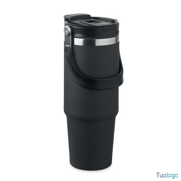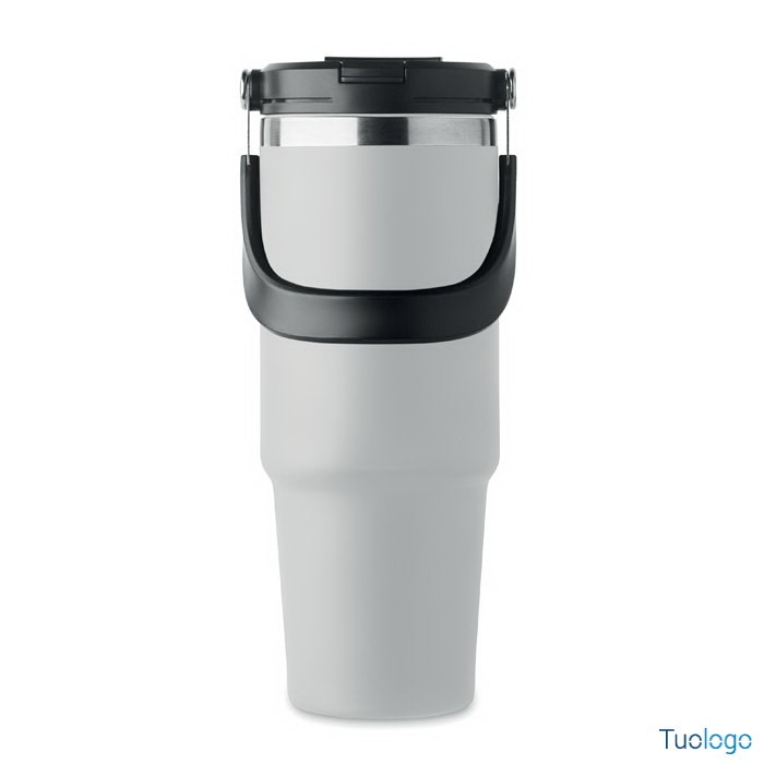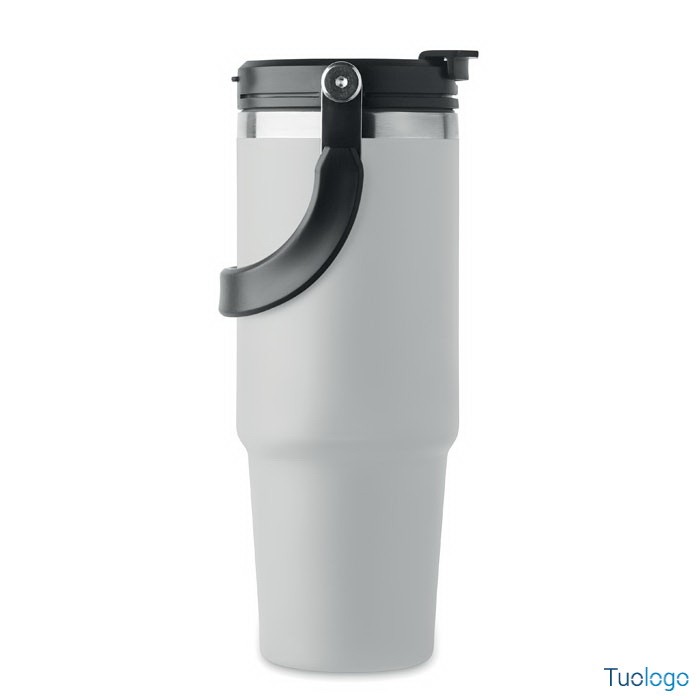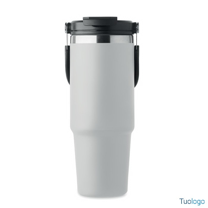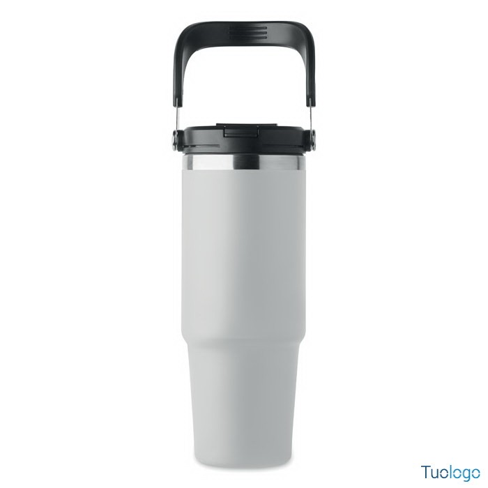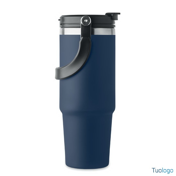 Bicchiere in acciaio riciclato Tenere. Bicchiere a doppio strato in acciaio inox riciclato con coperchio con cannuccia interna, imboccatura pieghevole e apertura per bere direttamente. Capacità 850 ml.Dimensioni: cm 33x25.5x20.