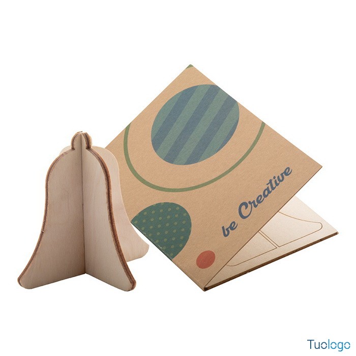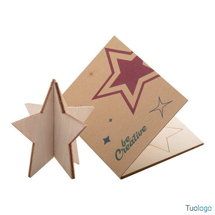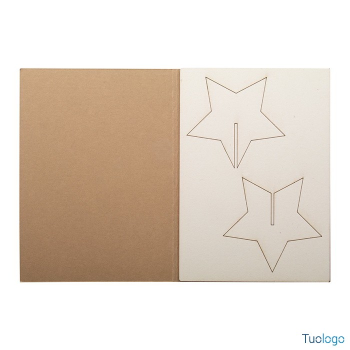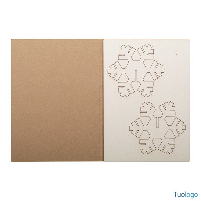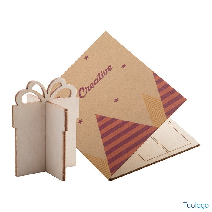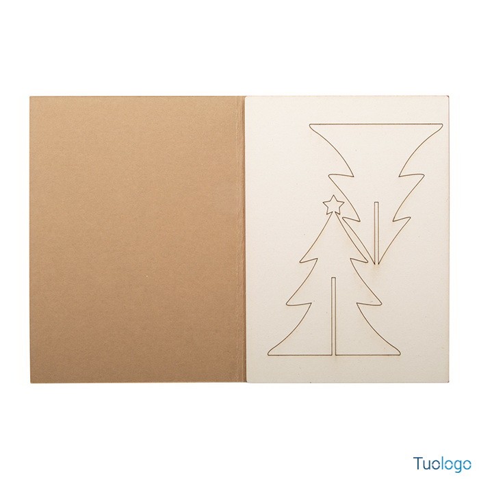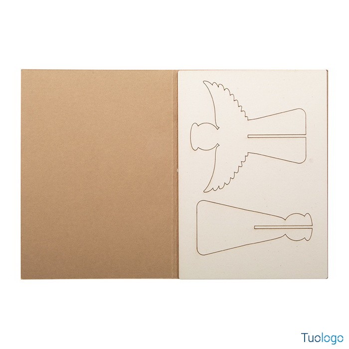 Biglietto auguri natalizio Angelo. In carta kraft con grafica personalizzata su entrambi i lati e puzzle in legno. Busta postale C6. Il costo include la stampa quadricromia sulla copertina. Dimensioni: cm 10,5x14,8x0,3.