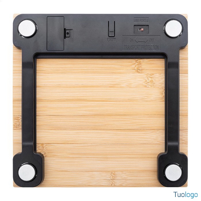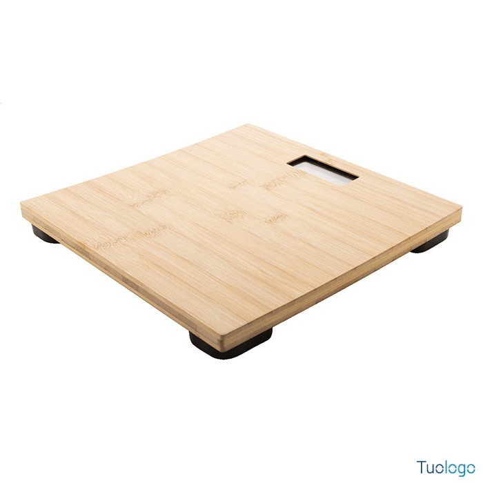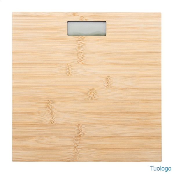 Bilancia Meilust. Bilancia pesapersone digitale con piattaforma di pesatura in bamboo. Portata: 150 kg, scala di 0,1 kg, unità di misura: kg/lb/st. Con batteria ricaricabile integrata. Dimensioni: cm 28x28x31.