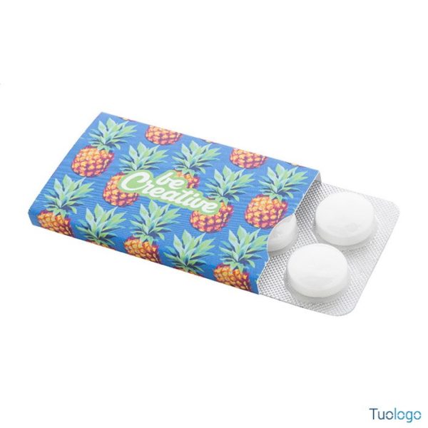 Blister Nisse. Blister con 5 caramelle alla menta di grandi dimensioni, con confezione in cartoncino stampato a colori. Dimensioni: cm 4,3x6,6x7.