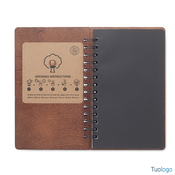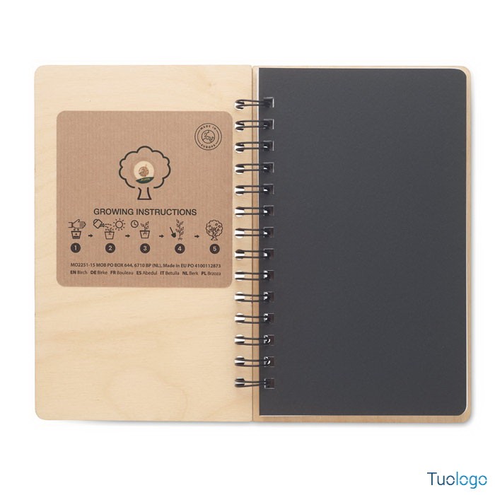 Bloc notes A5 betulla Marato. A5 Birch tree GROWBOOK in confezione regalo. Copertina rigida. 144 pagine a righe 72 fogli 80. Doppia spirale. Contiene semi di betulla. Prodotto in UE. Dimensioni: cm 21x14x1,3.