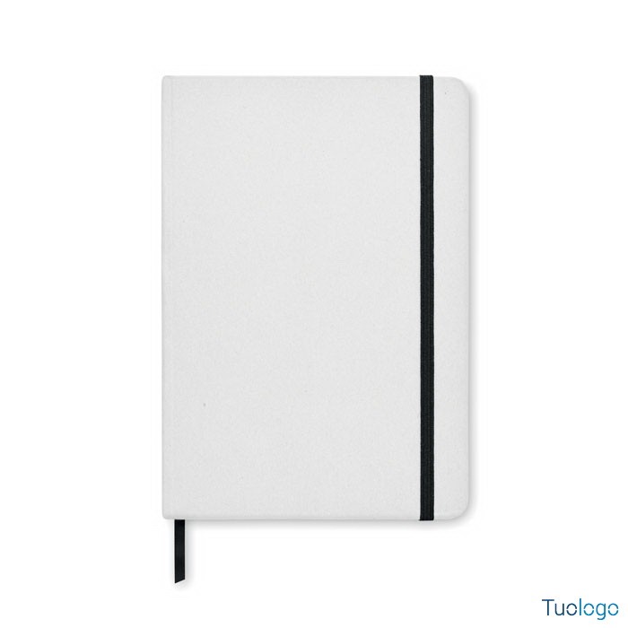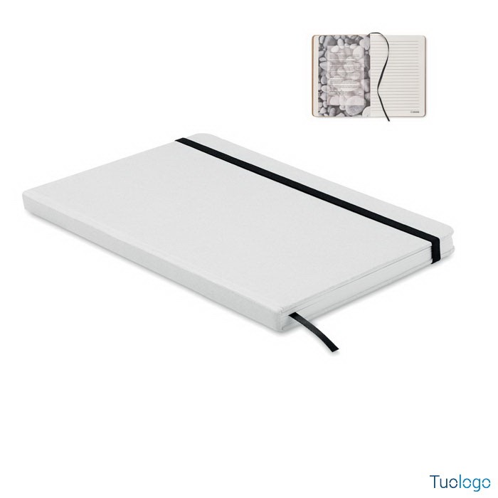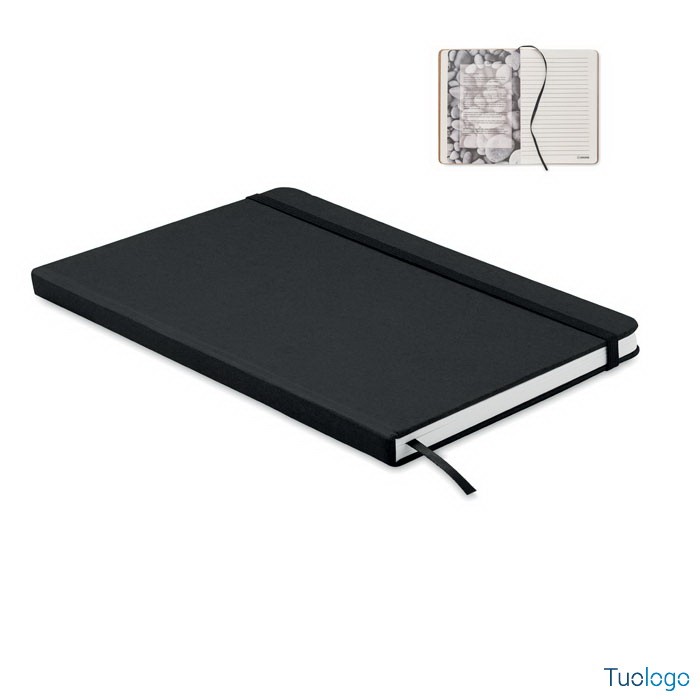 Bloc notes A5 Carnota. Notebook A5 con copertina rigida in cartone riciclato. Rilegato con custodia. 160 pagine foderate in carta pietra (80 fogli). Dimensioni: cm 21x14,5x1,3.