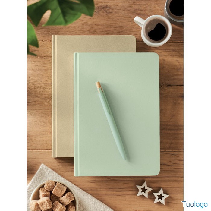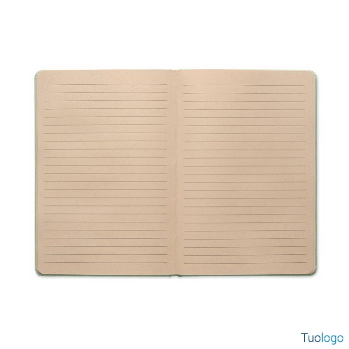 Bloc Notes A5 Oru. Bloc Notes A5 con copertina rigida e 160 pagine a righe (80 fogli) in PLA canna da zucchero. Rilegato con custodia. Dimensioni: 21x14,5x1,7 cm.