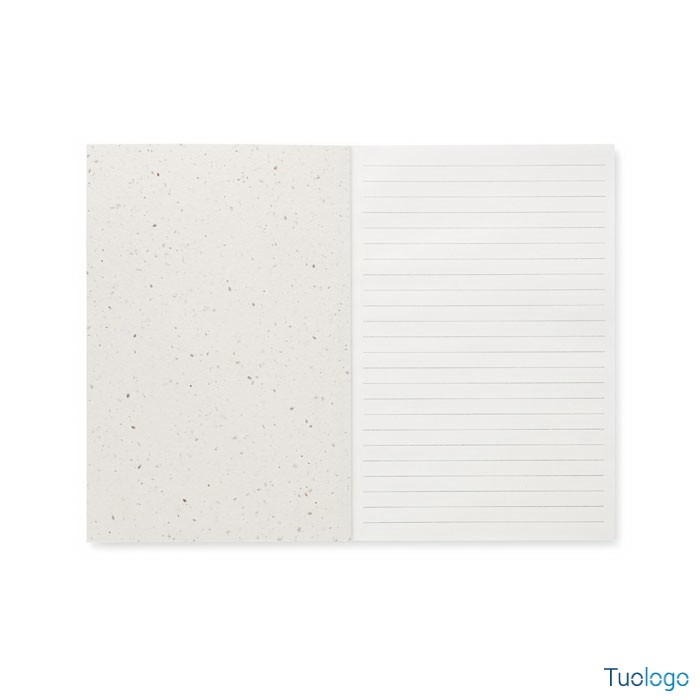 Bloc notes A5 semi. Copertina in morbida carta di semi, 100 fogli a righe in carta riciclata. Dimensioni: cm 21x14,8x1,2.