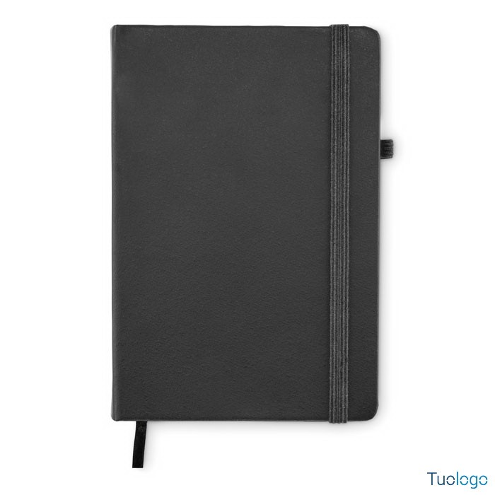 Bloc notes A5 Sopo. Notebook A5 in PU riciclato. Rilegato con custodia. 192 pagine a righe in carta riciclata (96 fogli). Dimensioni: cm 21,2x14,6x1,6.