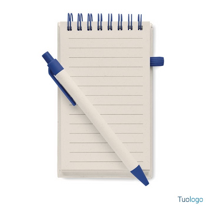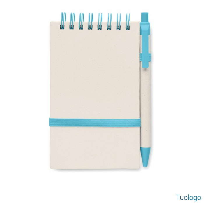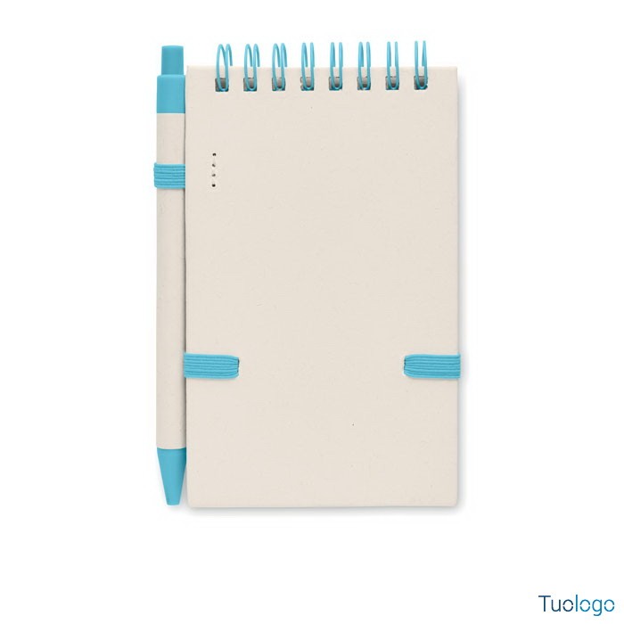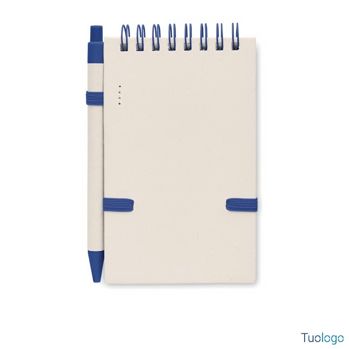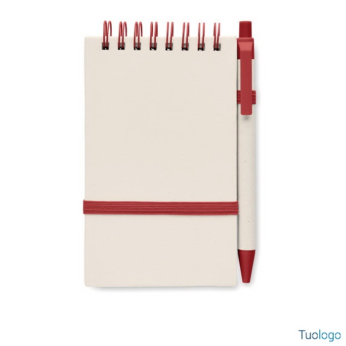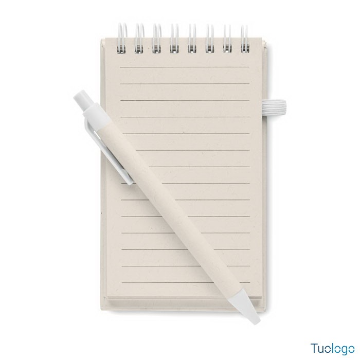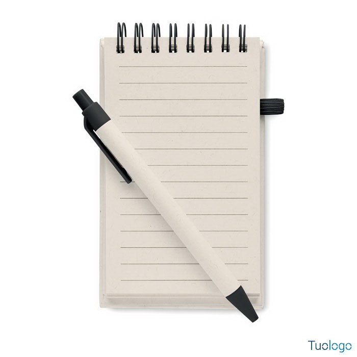 Bloc notes riciclato Padulle. Bloc notes da 70 fogli A6 in carta composta da 70% cartone del latte riciclato e 30% carta riciclata con penna abbinata. Dimensioni: cm 8,2x1,2x14.