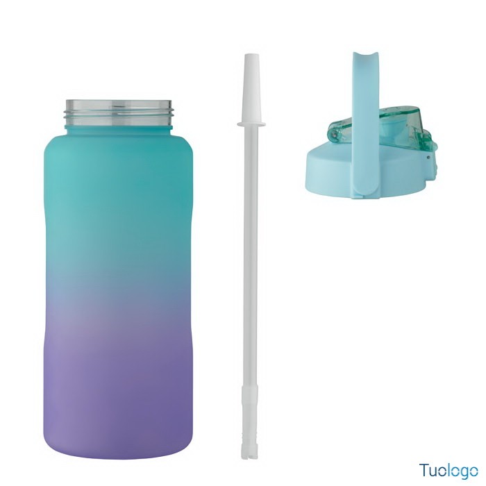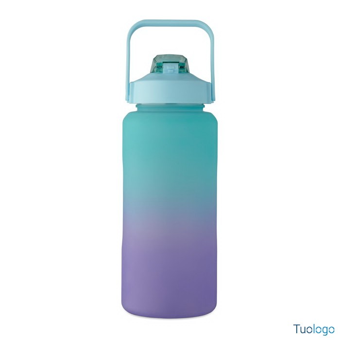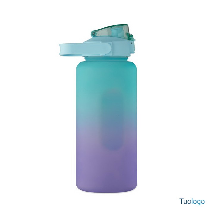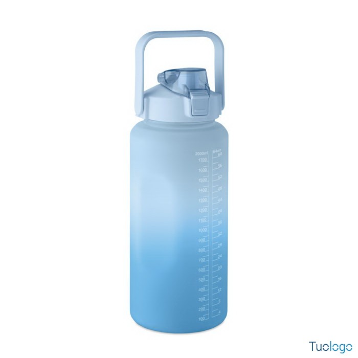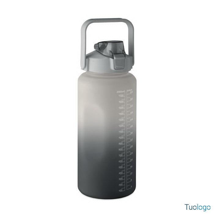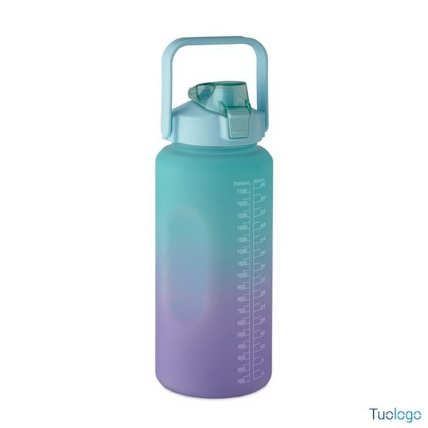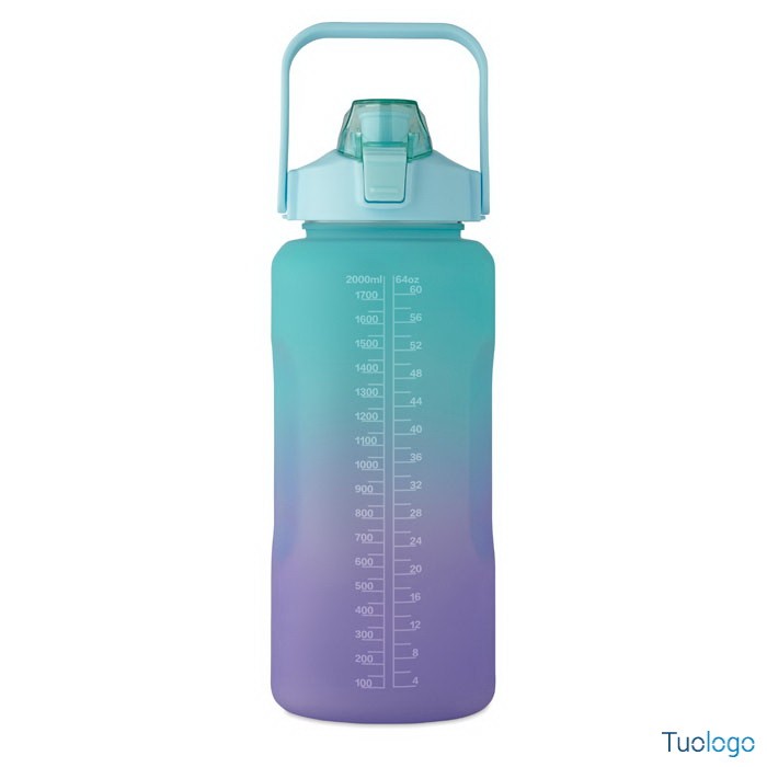 Borraccia 2000ml Daura. Borraccia motivazionale in RPET. Coperchio flip-top apribile con una sola mano, con cannuccia, chiusura di sicurezza e maniglia. Senza perdite. Capacità: 2000 ml.Dimensioni: diam cm 11x30.