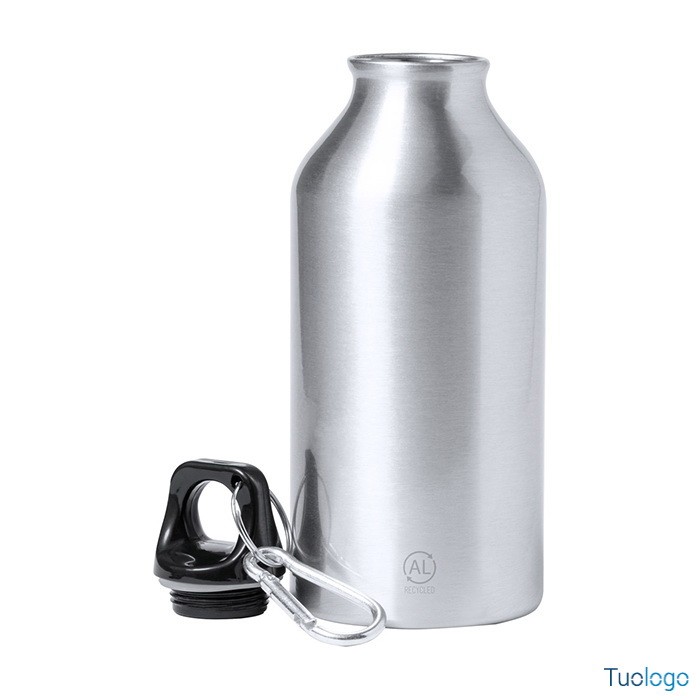 Borraccia 400 ml Ruivo. Borraccia da 400 ml. in alluminio riciclato con moschettone. Dimensioni: diam cm 6,6x17,5.