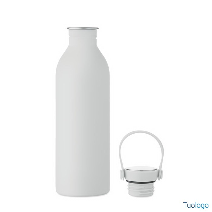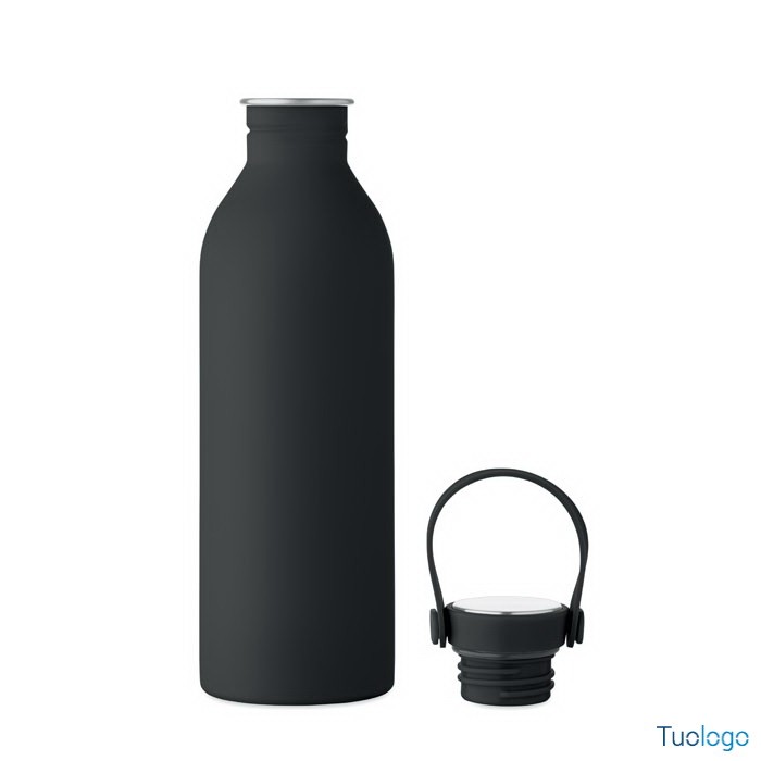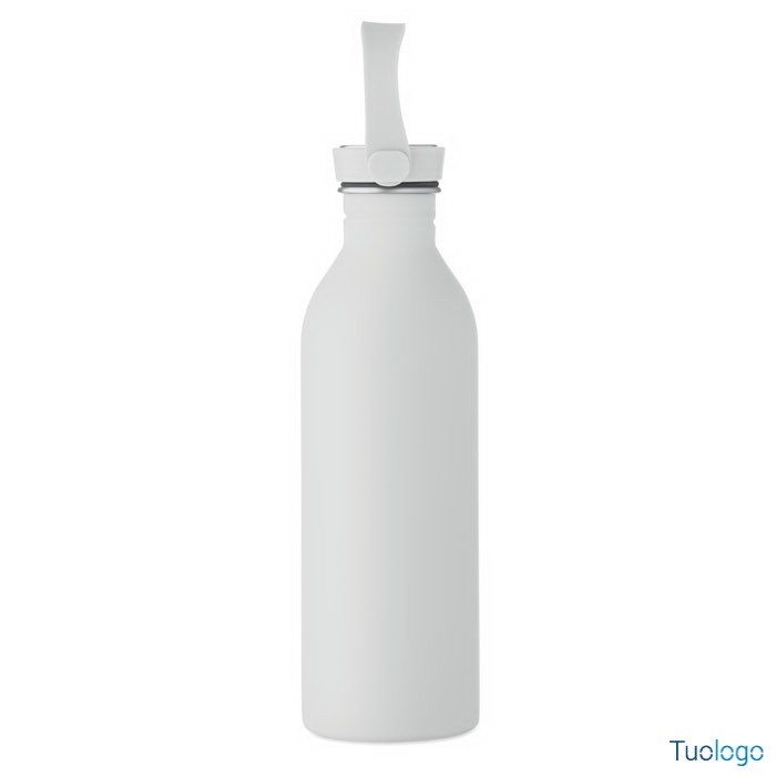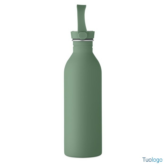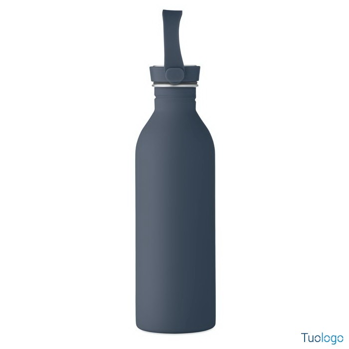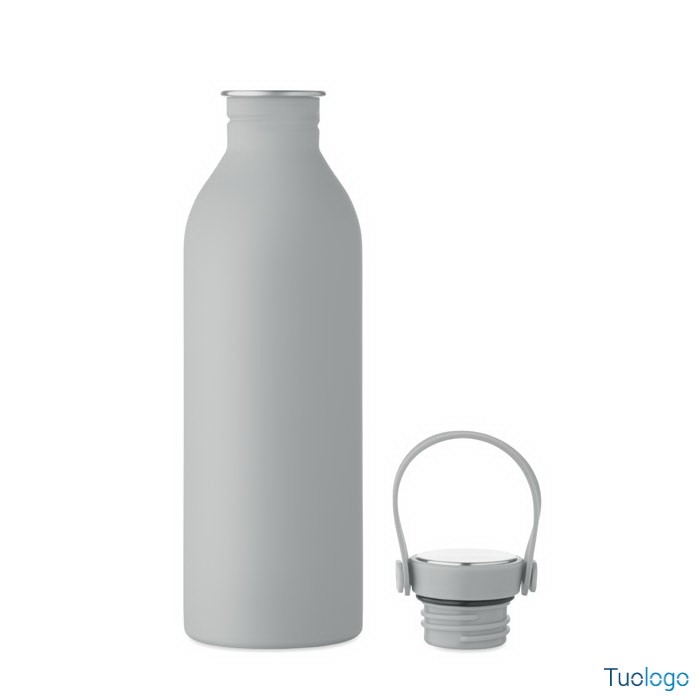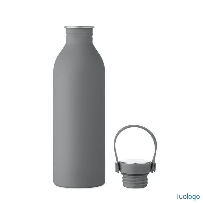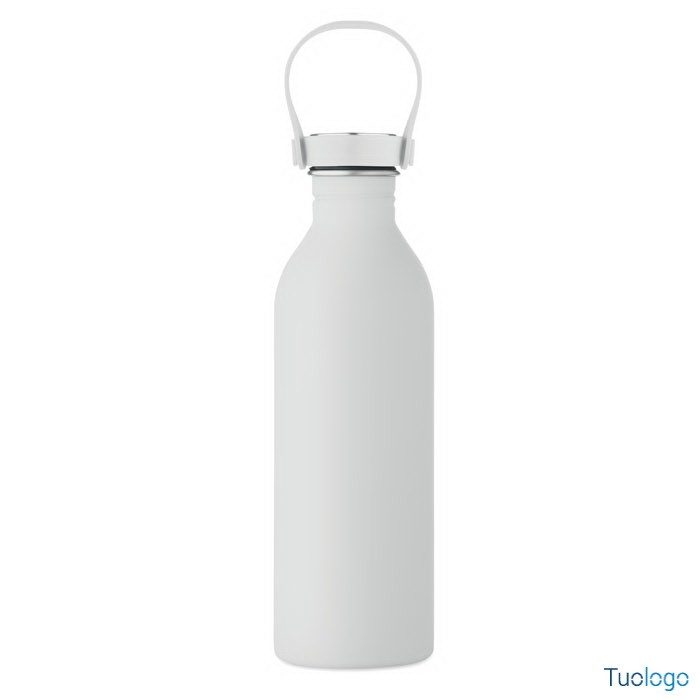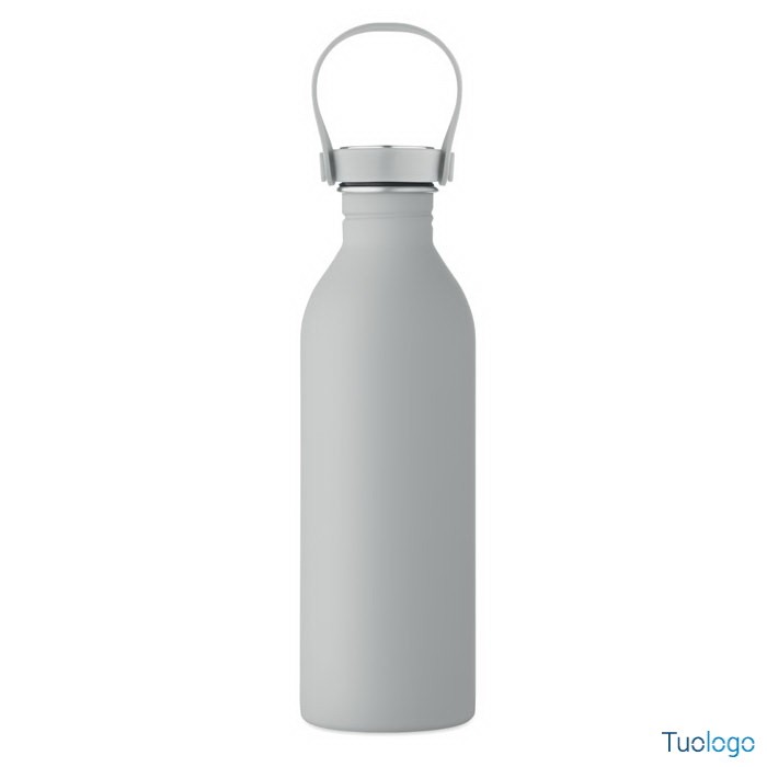 Borraccia 500ml Simbo. Bottiglia a singolo strato in acciaio inox riciclato,finitura in gomma. Coperchio in PP e SS, manico in silicone. 500 ml. Dimensioni: cm 6.1x21.3. Attenzione al surriscaldamento.