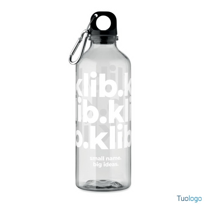 Borraccia 500ml Zimmi. Bottiglia in RPET con moschettone. 500 ml. Dimensioni: diam cm 6.5x21.