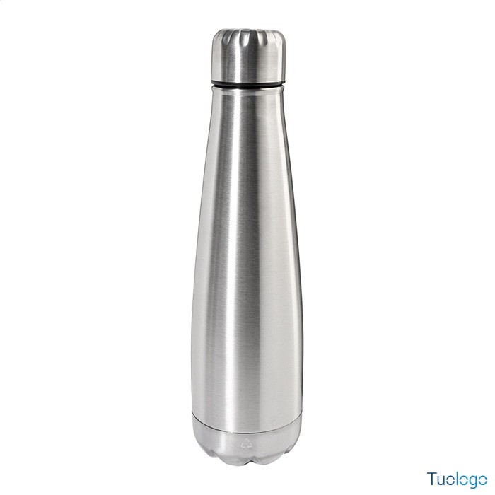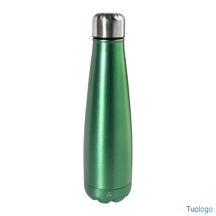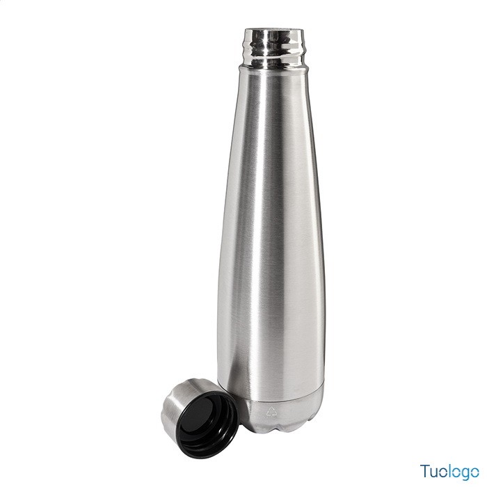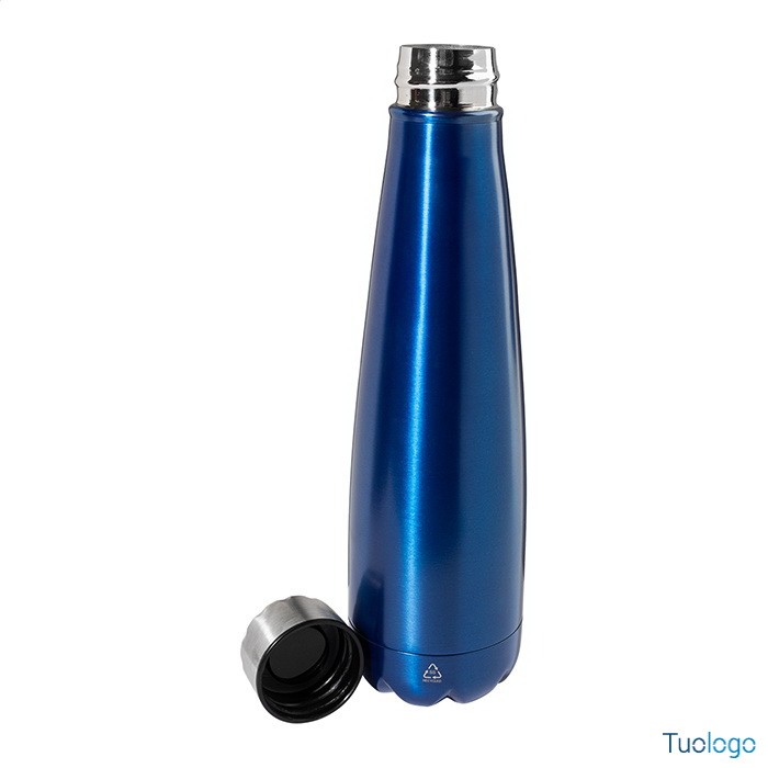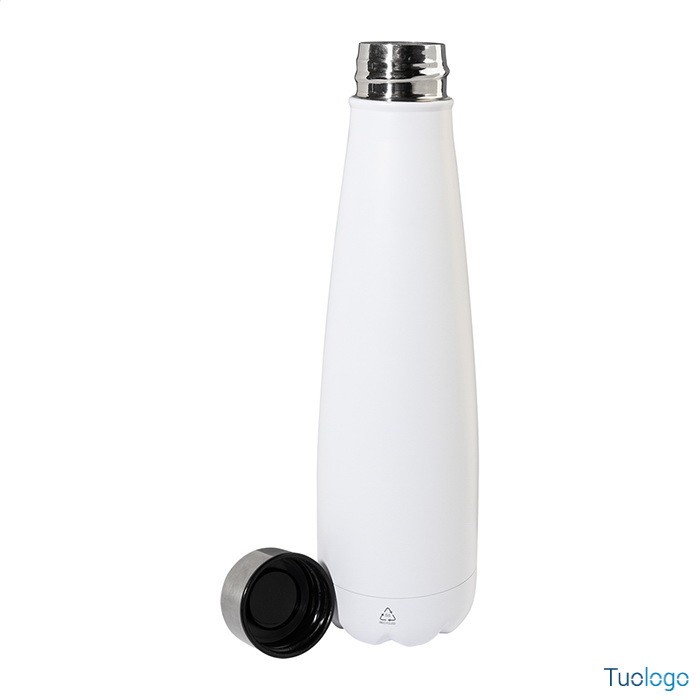 Borraccia 600ml Esporles. Borraccia in acciaio riciclato da 600ml con tappo a contrasto. Dimensioni: diam cm 7x26.