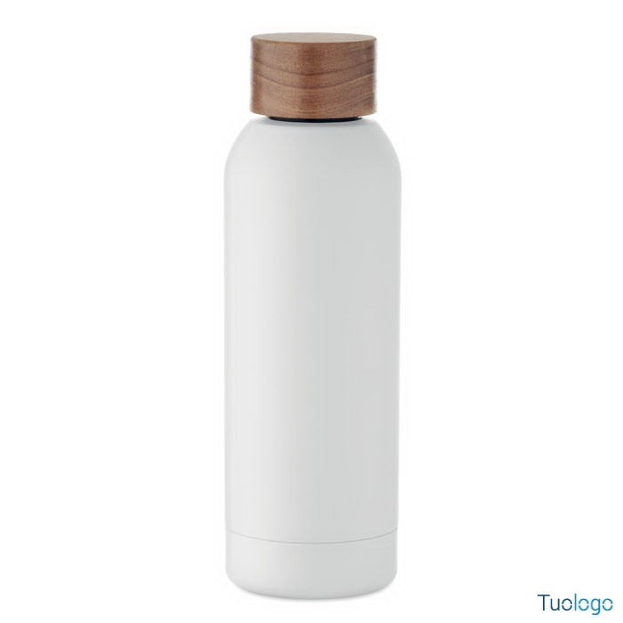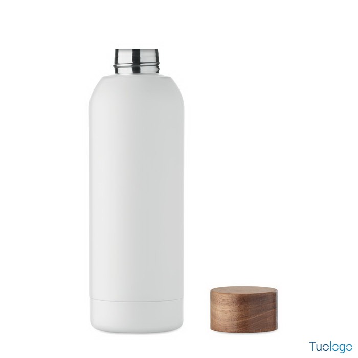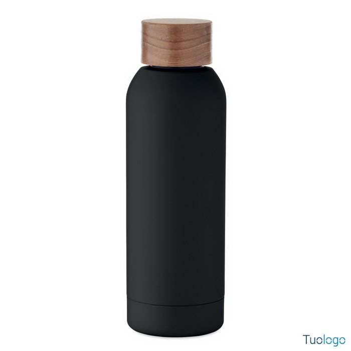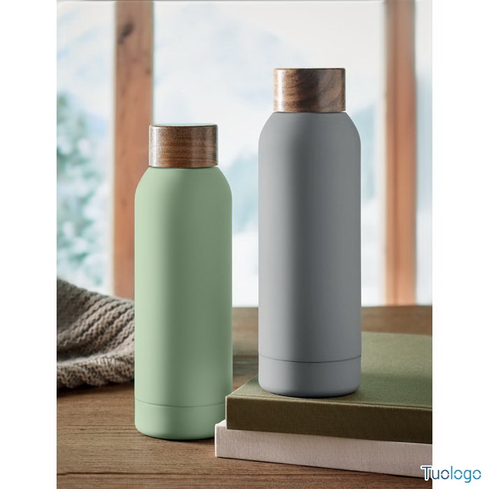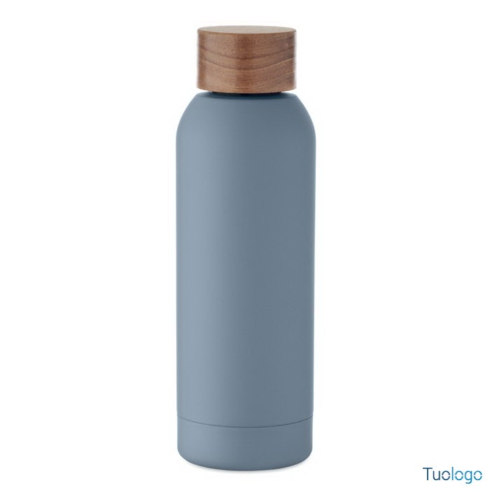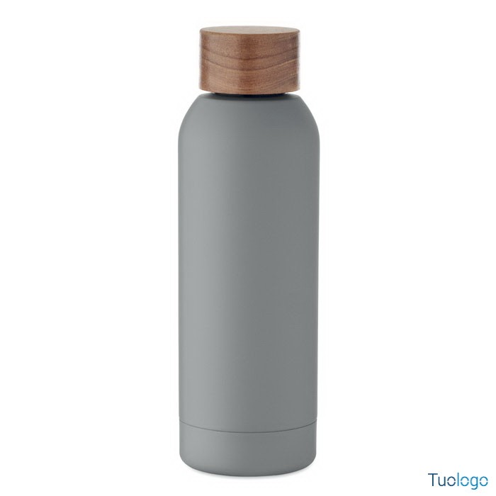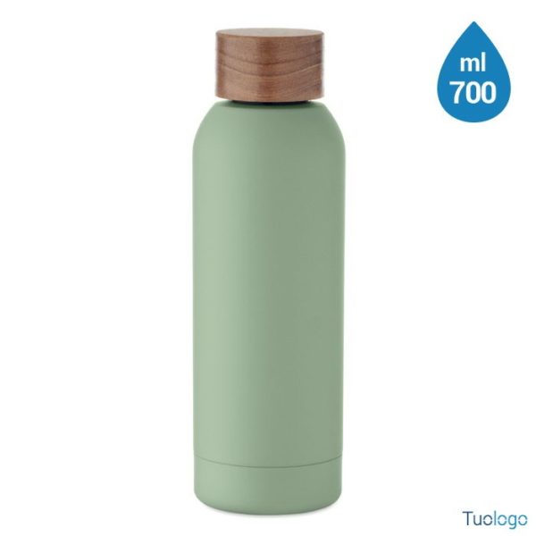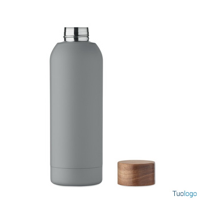 Borraccia 700ml Parit. Bottiglia a singolo strato in acciaio inox riciclato al 90% e acciaio inox al 10% con finitura in gomma e coperchio in legno di acacia. Senza perdite. 700 ml. Dimensioni: cm 7x22,5. Poiché si tratta di una bottiglia a singolo strato, è possibile che si surriscaldi.