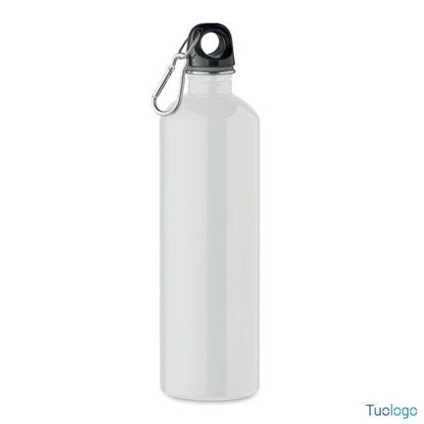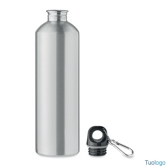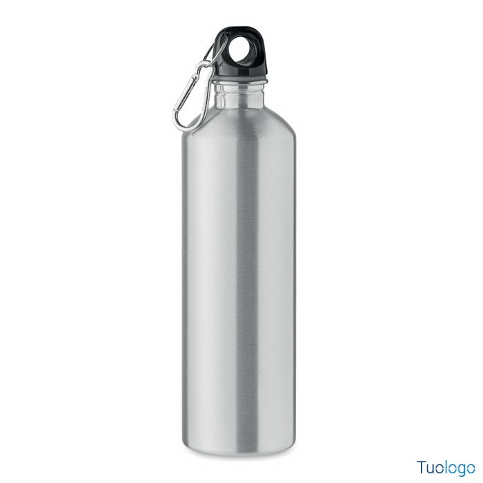 Borraccia 750ml Senzala. Bottiglia a singolo strato in acciaio inox riciclato con moschettone. 750 ml.Dimensioni: cm 6.5x25. Il moschettone non è adatto all'arrampicata (uso non professionale)