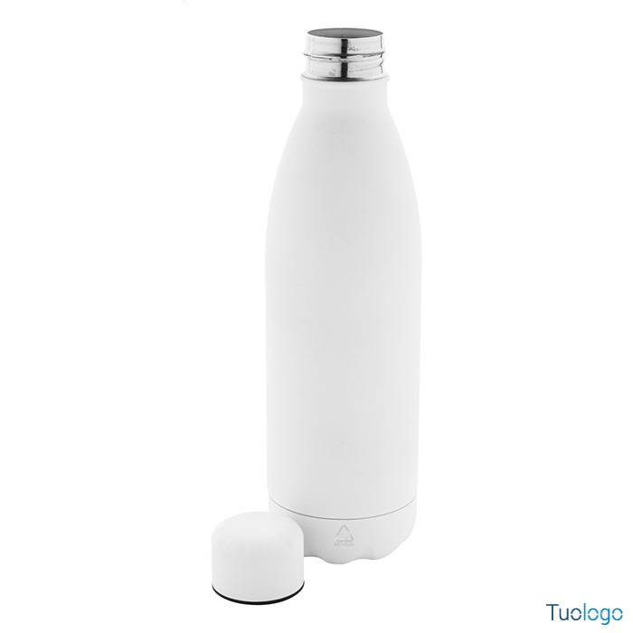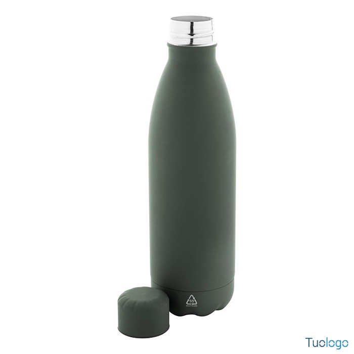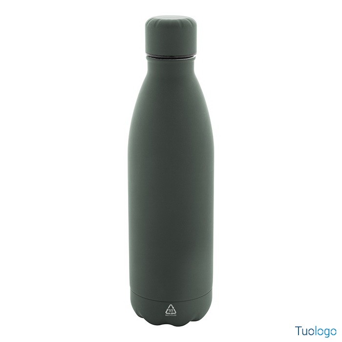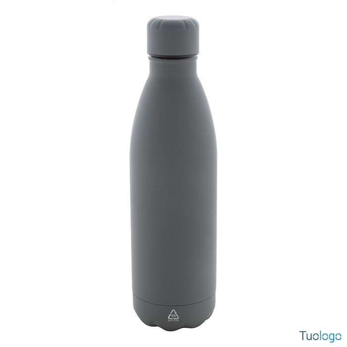 Borraccia in acciaio Tekra. Borraccia in acciaio riciclato e finitura gommata. Capacità 790 ml. Dimensioni: diam cm 7,4×25,7.