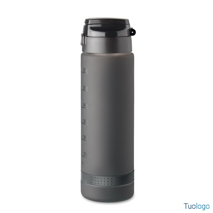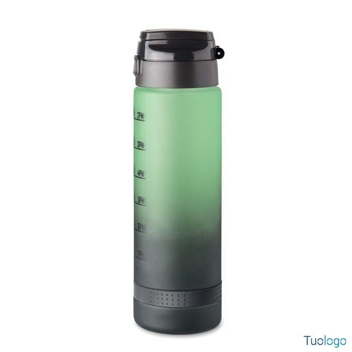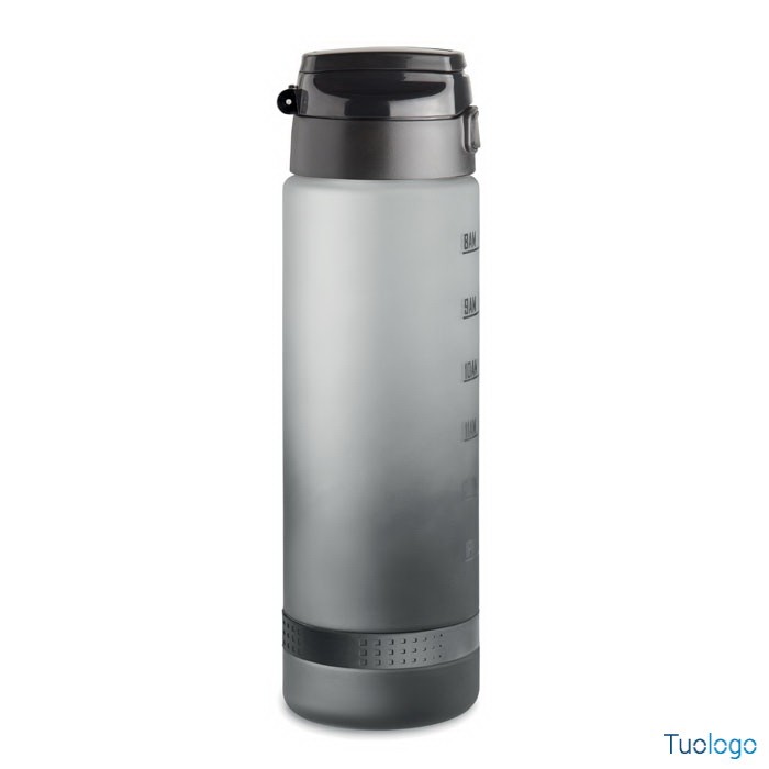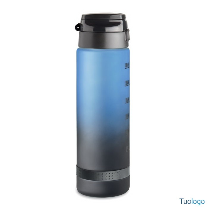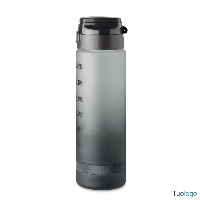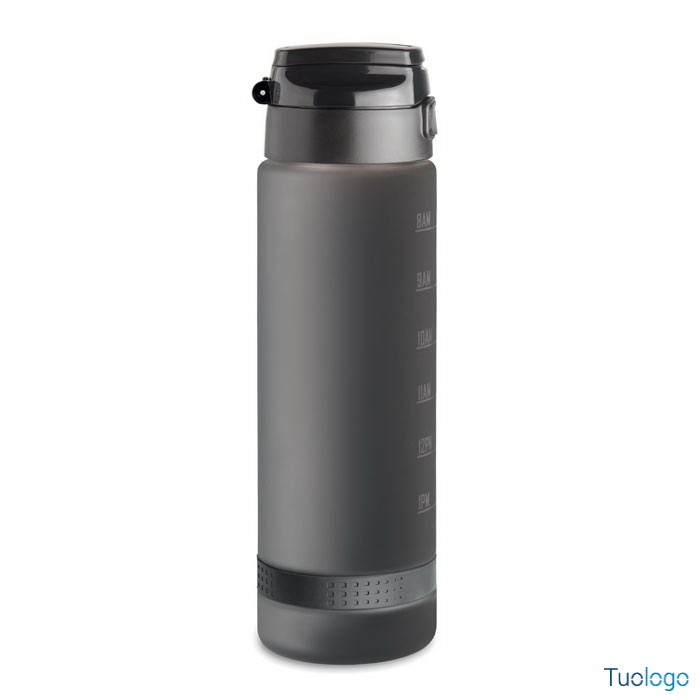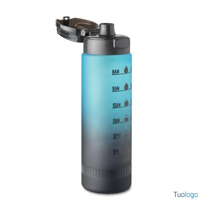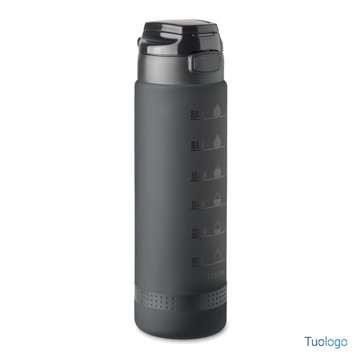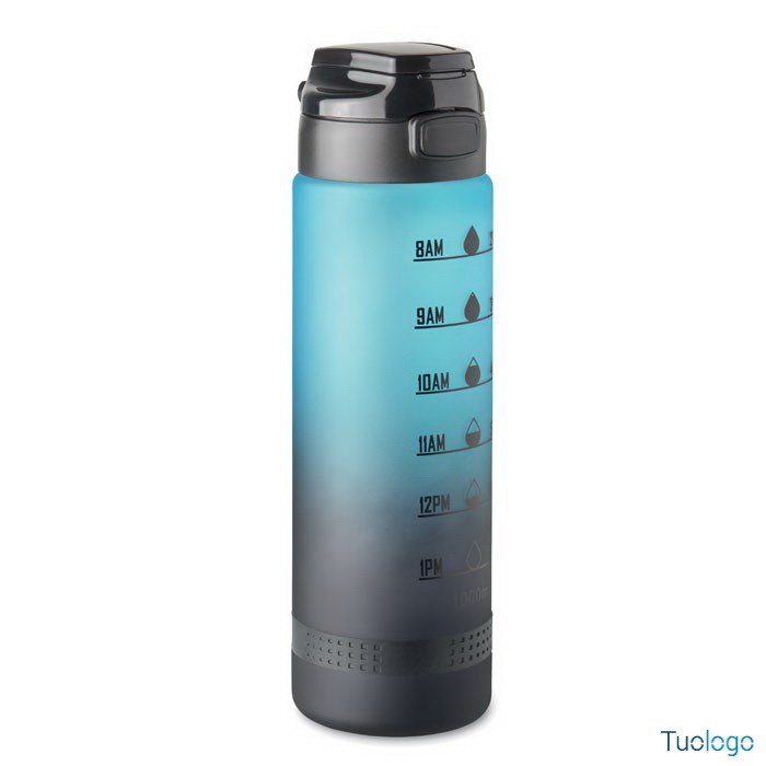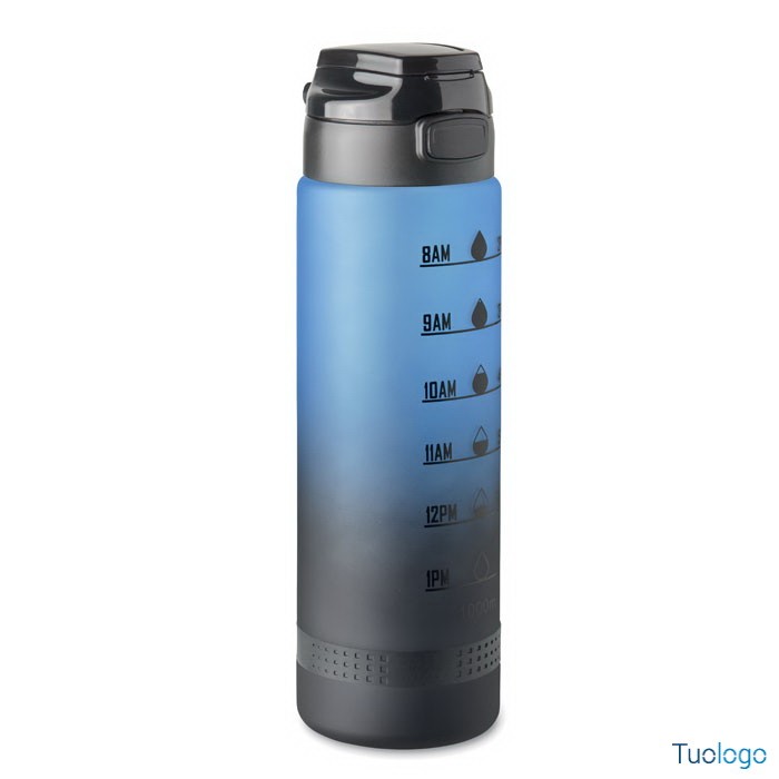 Borraccia sportiva 1L Caranavi. Con marcatura temporale motivazionale, coperchio flip top apribile con una sola mano, chiusura di sicurezza e cinghia di trasporto. 1L. Dimensioni: diam cm 7,8x26.