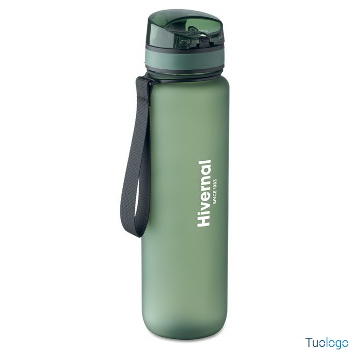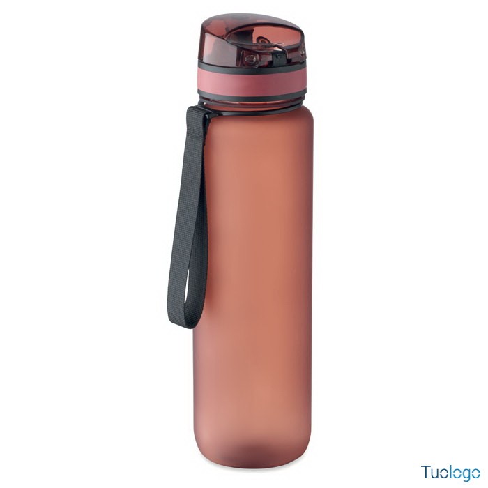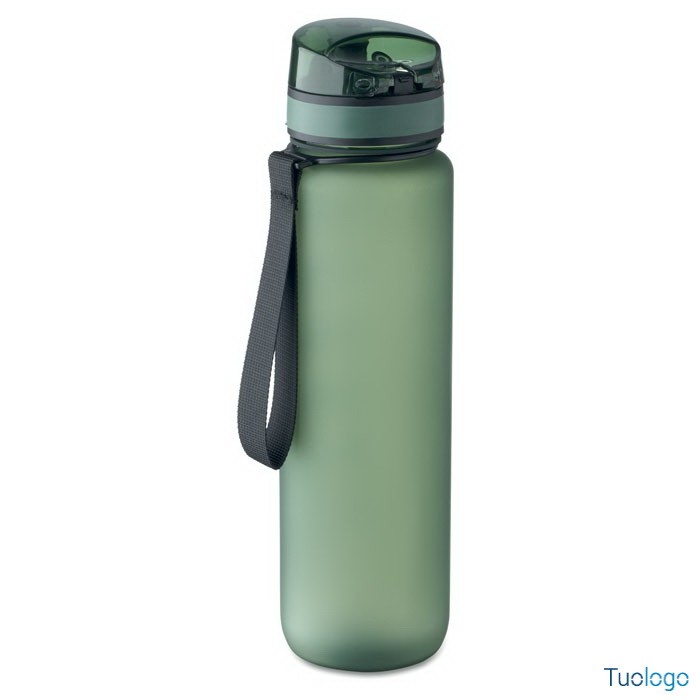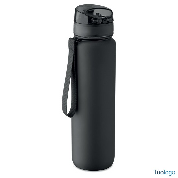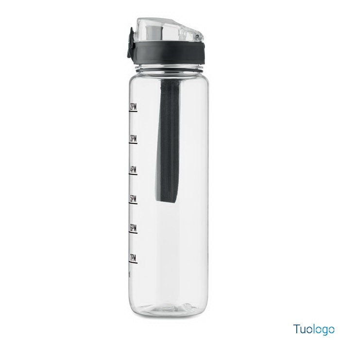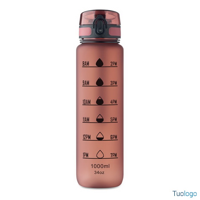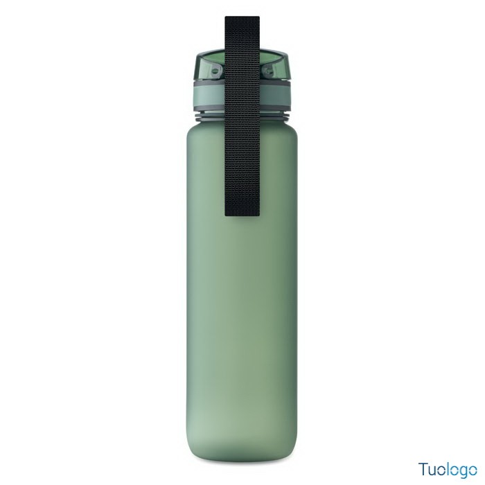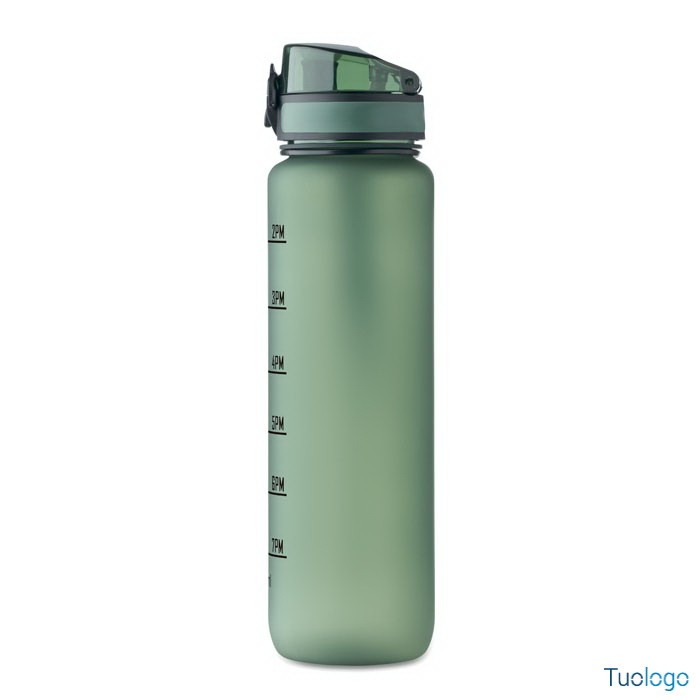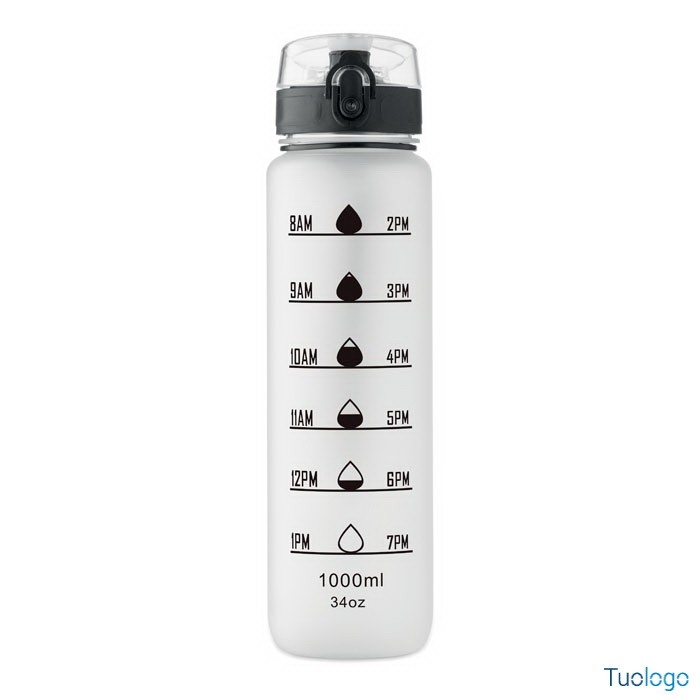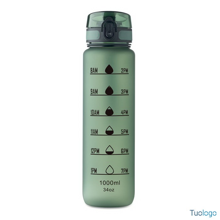 Borraccia sportiva 1L Malax. Borraccia sportiva in RPET, con indicatori di tempo motivazionali, coperchio flip top.Chiusura di sicurezza e cinghia di trasporto. 1L. Dimensioni: 7,5x28,5 cm.