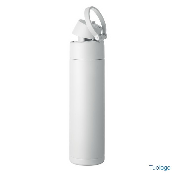Borraccia termica 500ml Boure. Bottiglia isolata a doppia parete in acciaio inossidabile riciclato. Cannuccia 2 in 1 coperchio in PP con manico. Senza perdite. 500 ml. Dimensioni: cm 7.4x26.6.