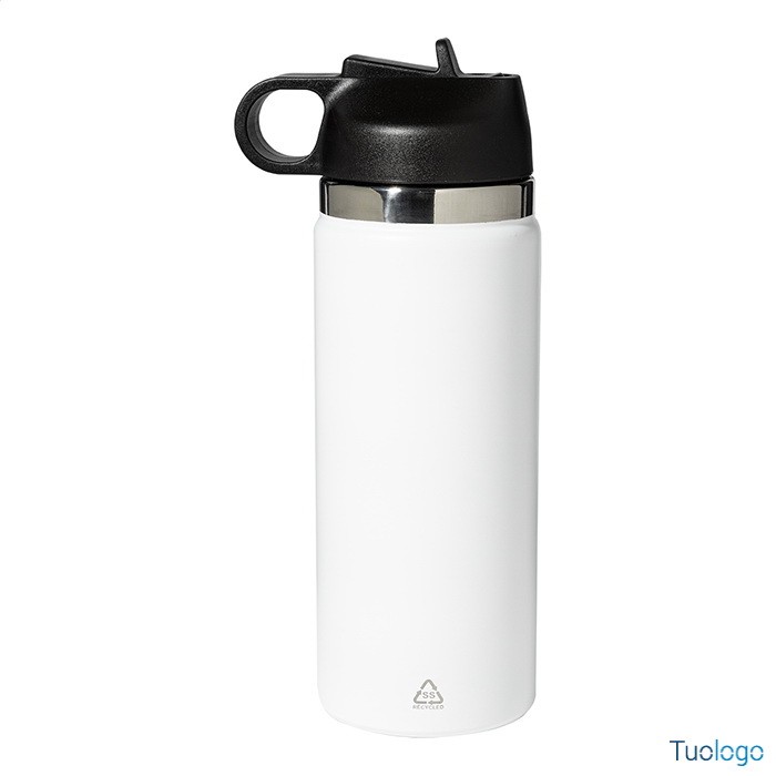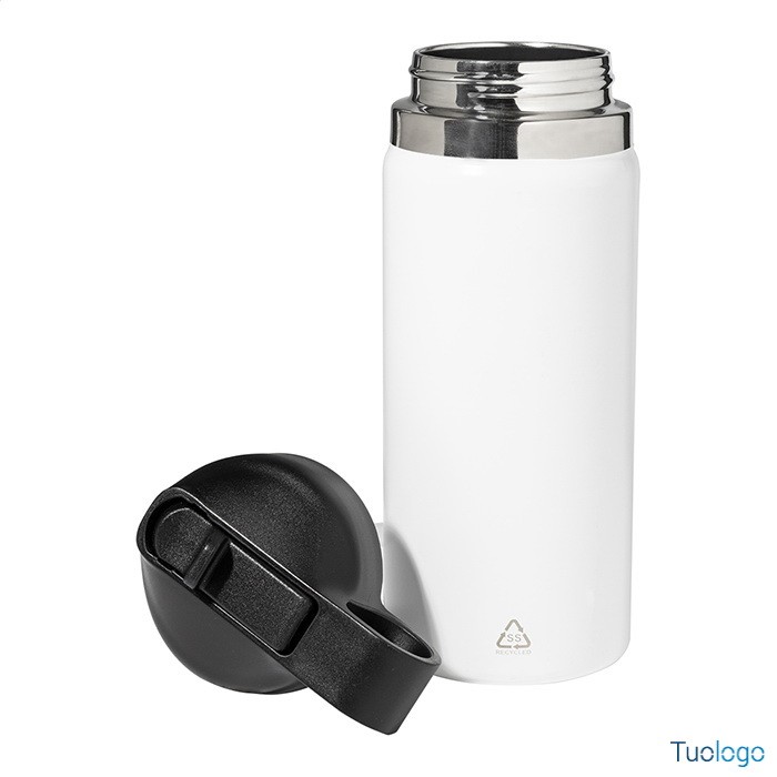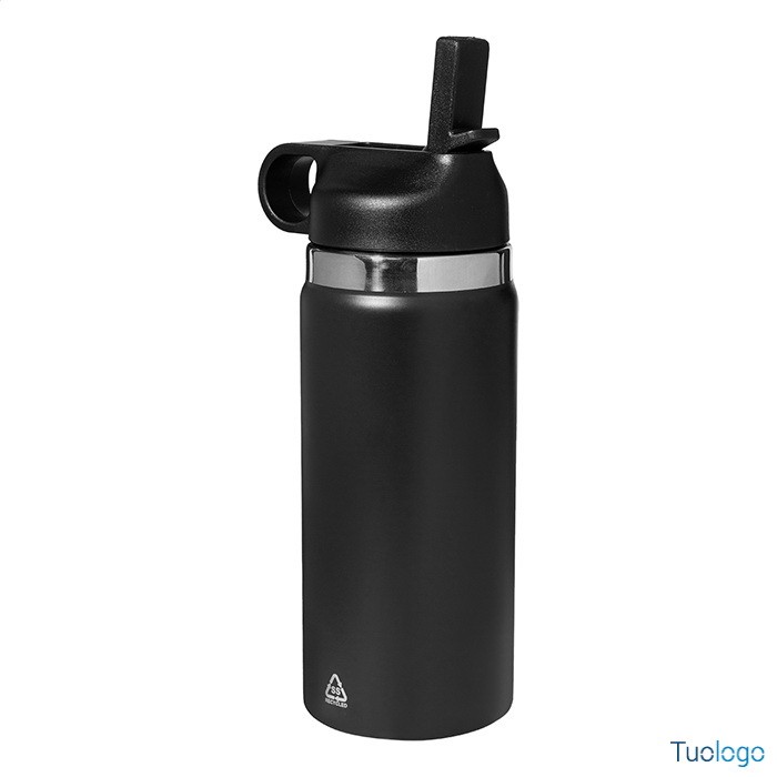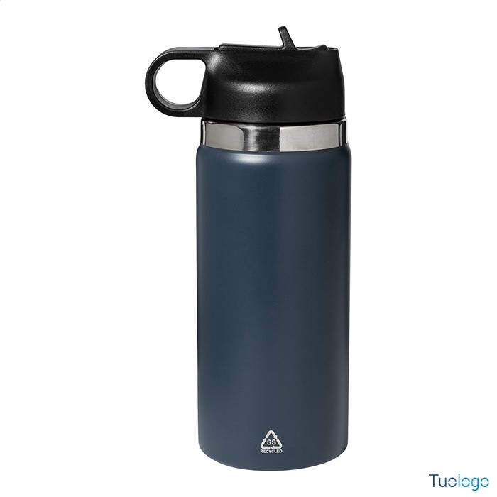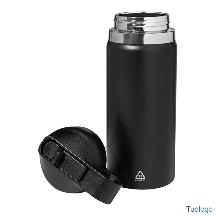 Borraccia termica Blame. Borraccia in acciaio riciclato a doppia parete da 500ml. con chiusura flip-top in PP e cannuccia integrata. Dimensioni: cm 7,3x21.