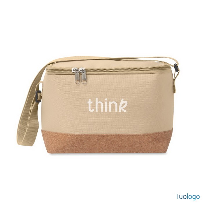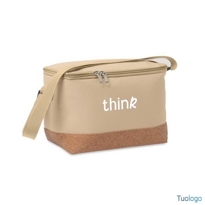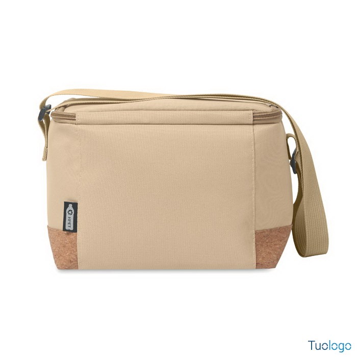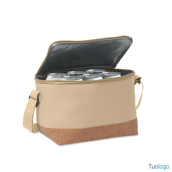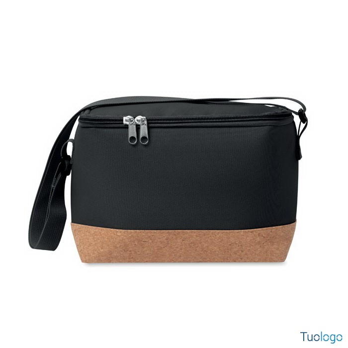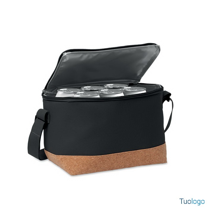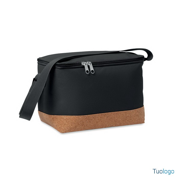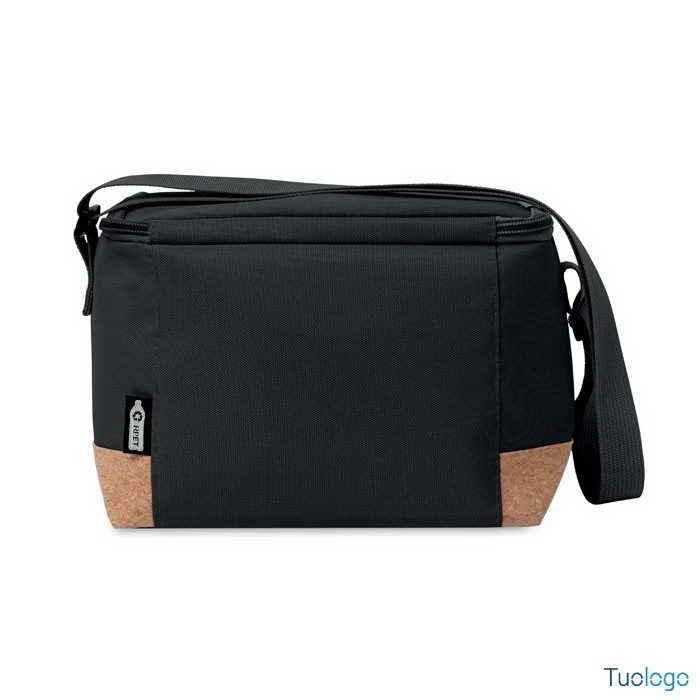 Borsa frigo in RPET Sosa. Borsa frigo in RPET 600D e fondo in sughero. PEVA con schiuma PE da 2 mm. Capacità 5L. Dimensioni: cm 22x14.5x17.