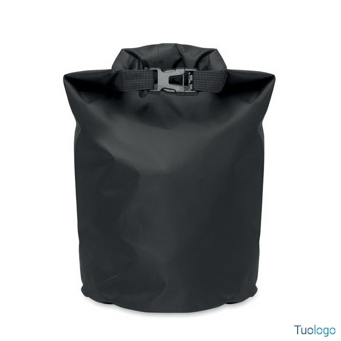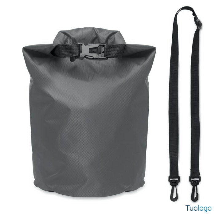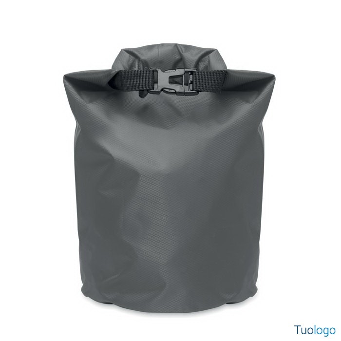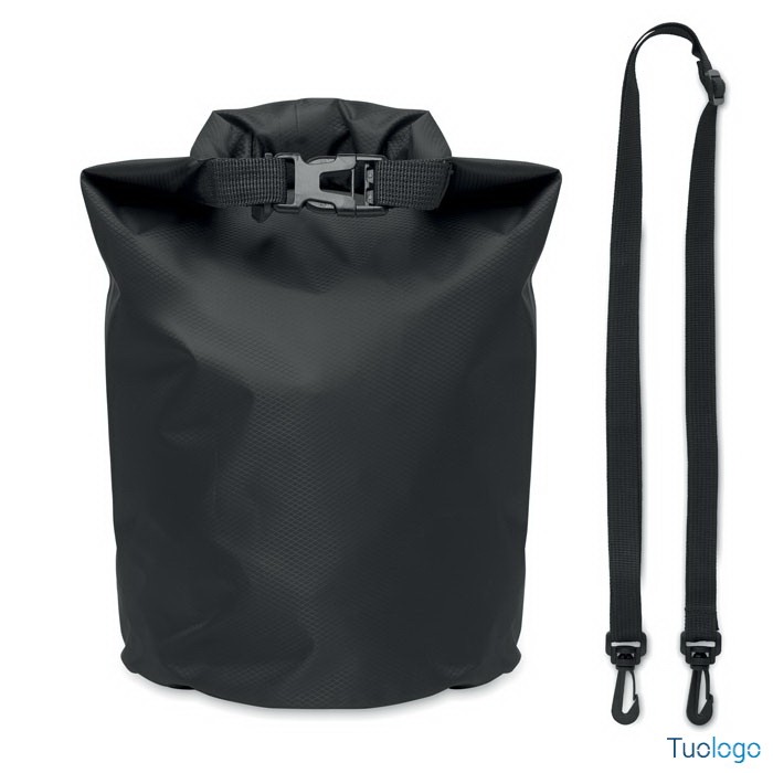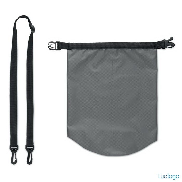 Borsa impermeabile con tracolla Laras. Borsa impermeabile (IPX6) in ripstop 210T RPET con tracolla. Capacità 5L. Dimensioni: cm 28x36.