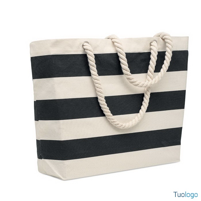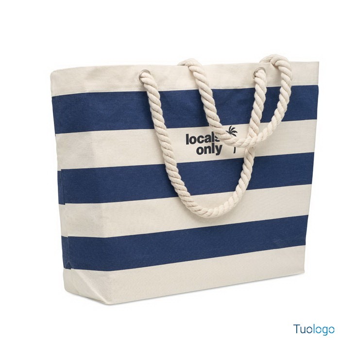 Borsa mare Gonzaga. Borsa mare o per la spesa a righe in cotone con manico in corda. 220 gr. Dimensioni: cm 55x15x39.