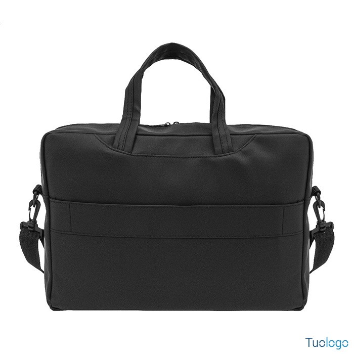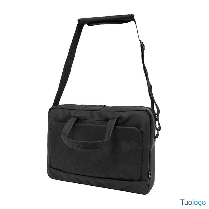 Borsa portadocumenti Zhe. Borsa portadocumenti e porta computer in pelle PU riciclata ed impermeabile, con scomparto e tasca anteriore chiusi da cerniera, tracolla regolabile. Dimensioni: cm 41x30x9.