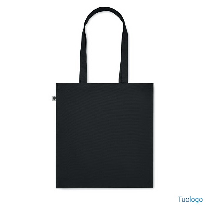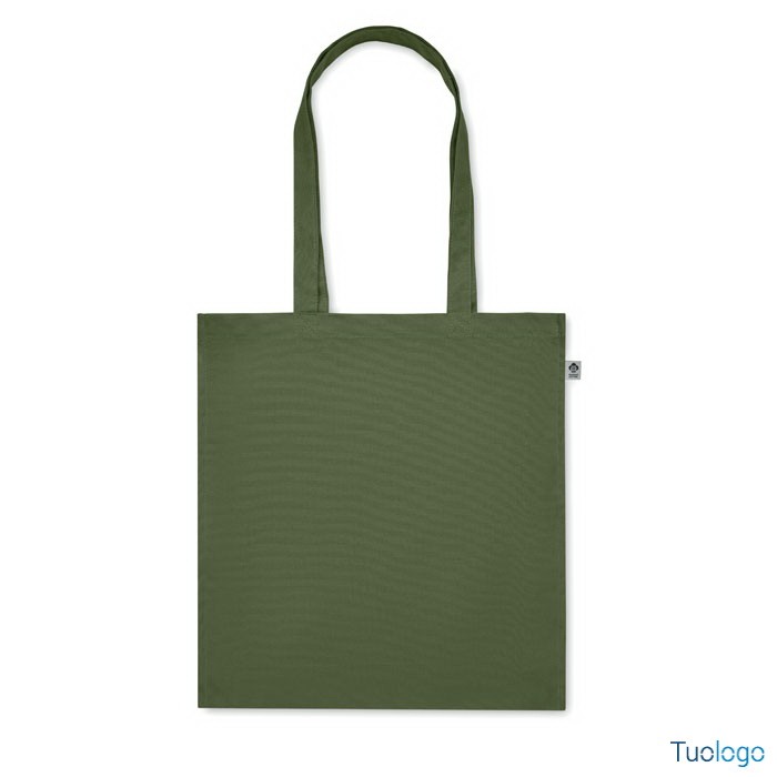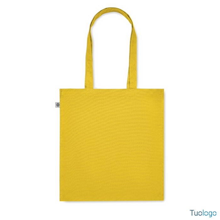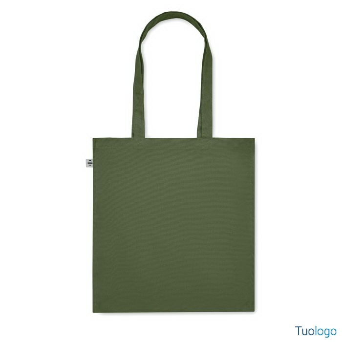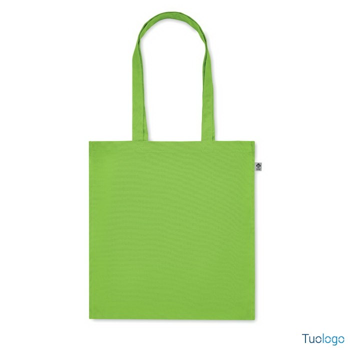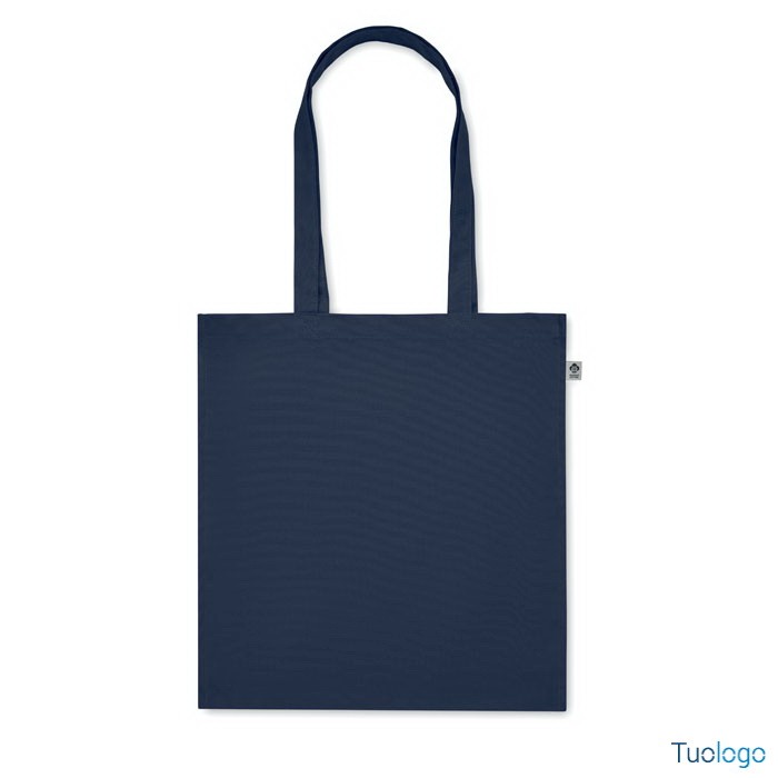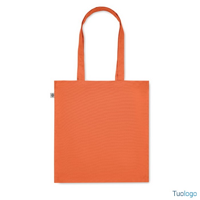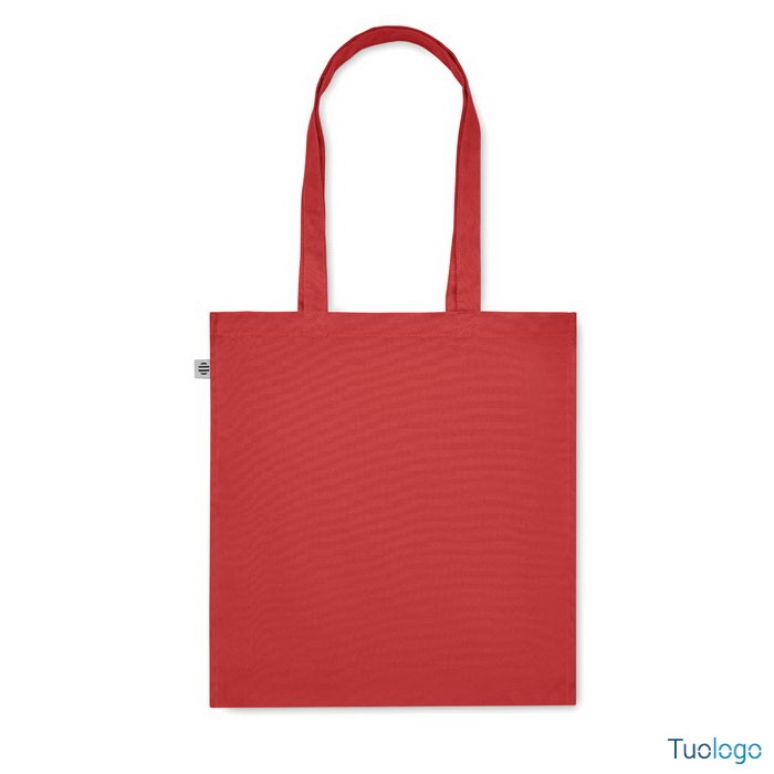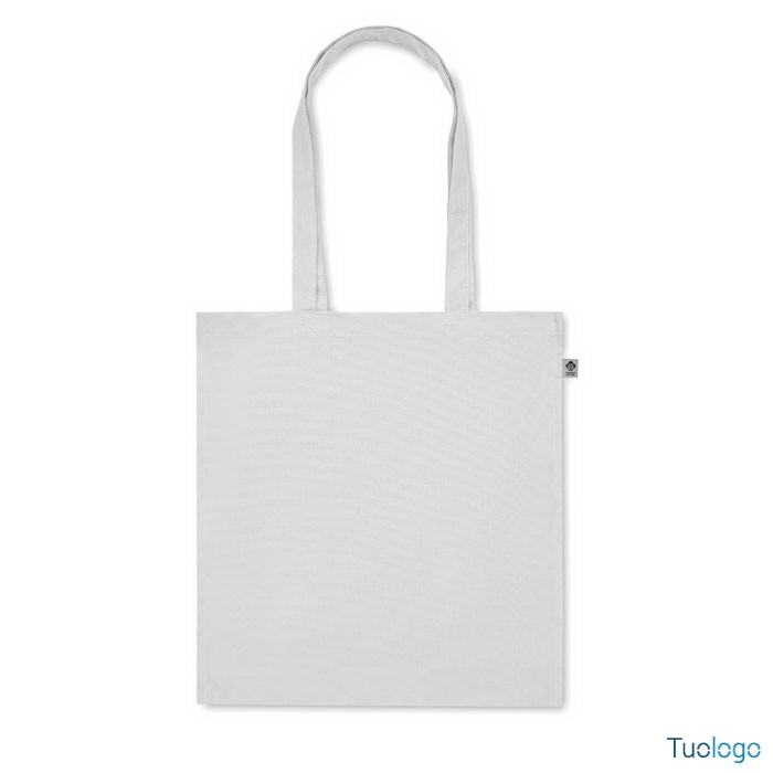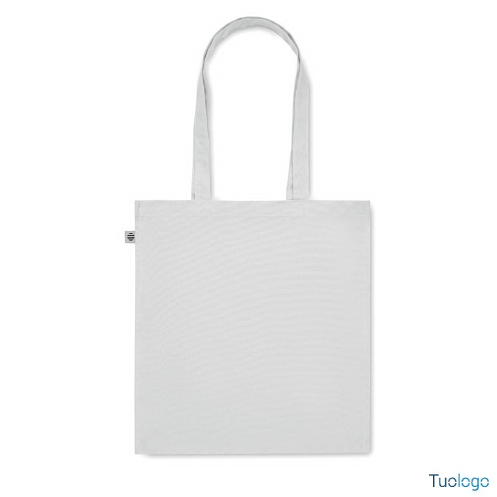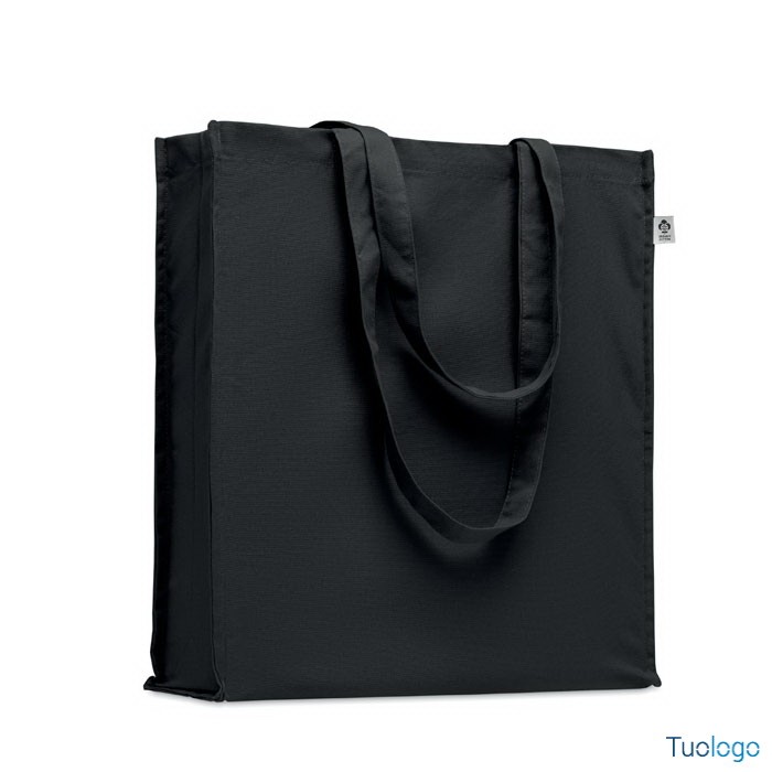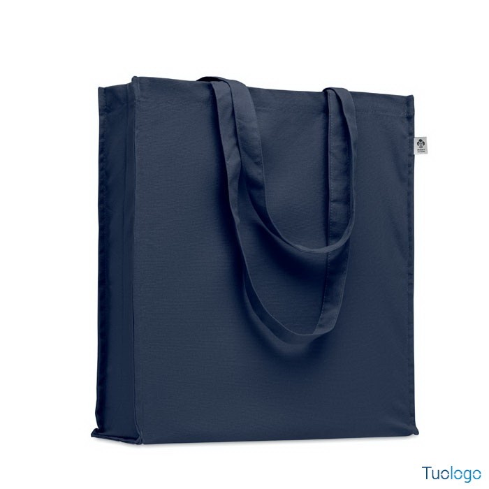 Borsa shopper manici lunghi Sorbara. Shopper in cotone biologico con manici lunghi e soffietto. 220 gr. Dimensioni: cm 38x9x42.