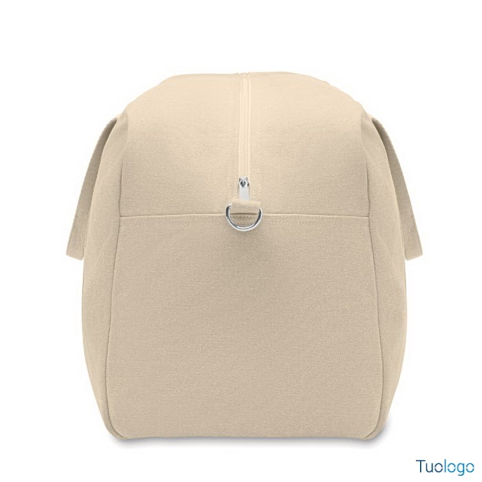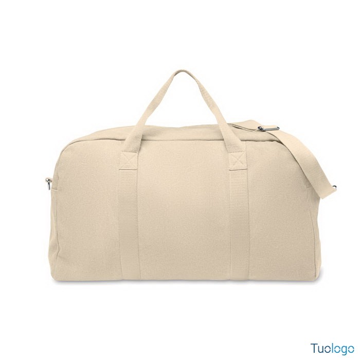 Borsone da viaggio in tessuto riciclato Tirado. Borsone da viaggio in tessuto riciclato da 450 gr/m² (60% cotone riciclato e 40% poliestere riciclato) con tracolla in cotone regolabile e staccabile. Dimensioni: cm 57x33x27.5.