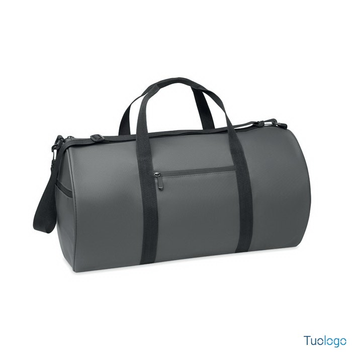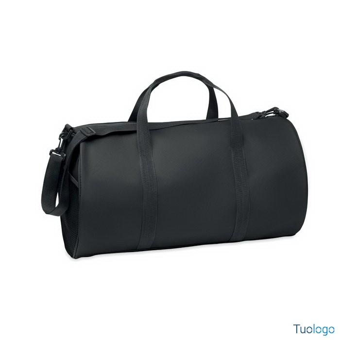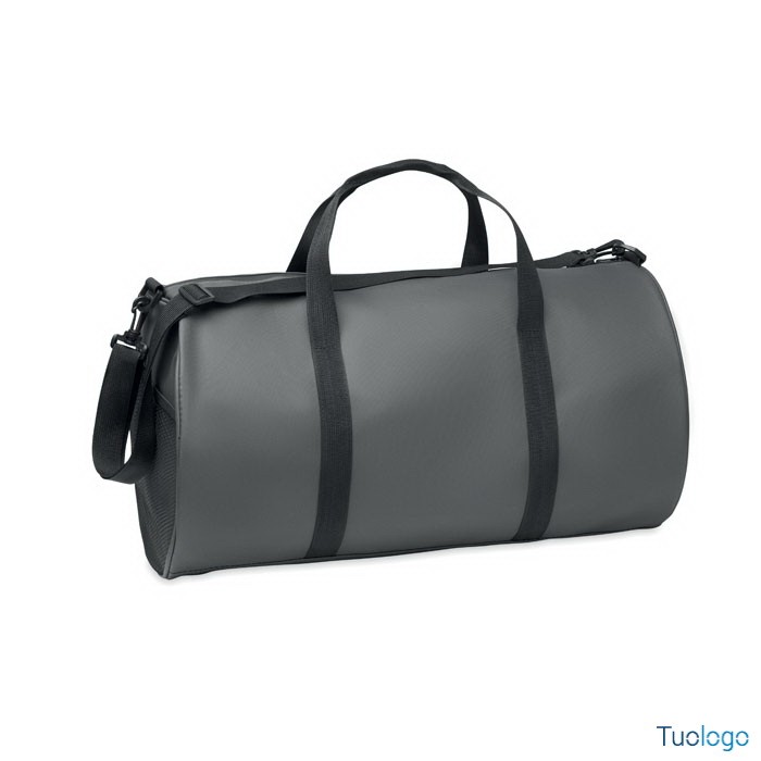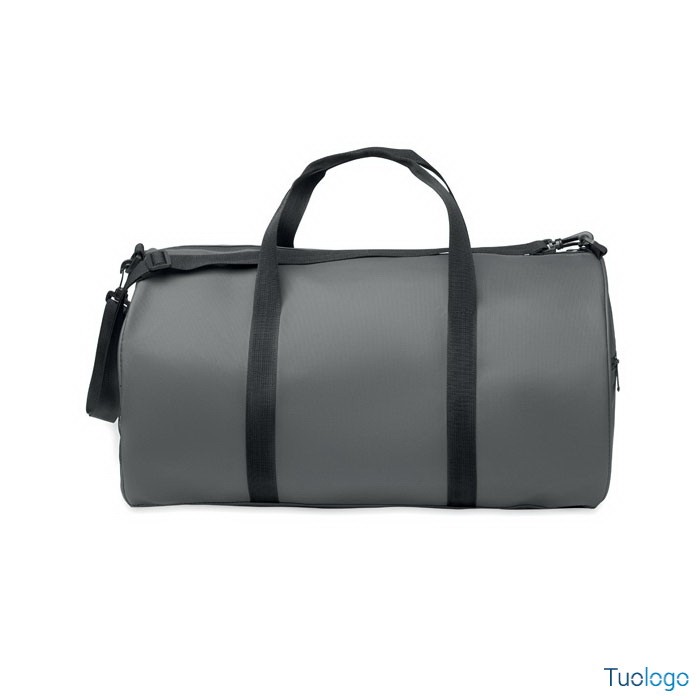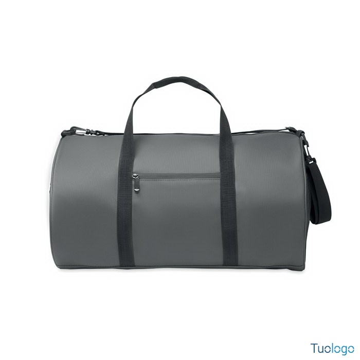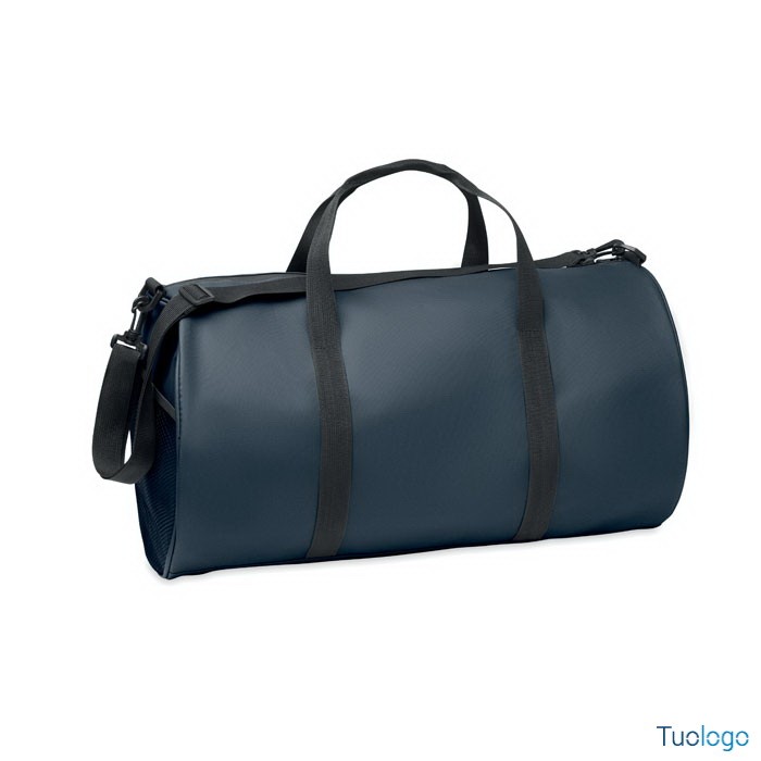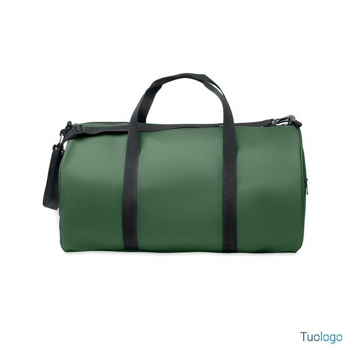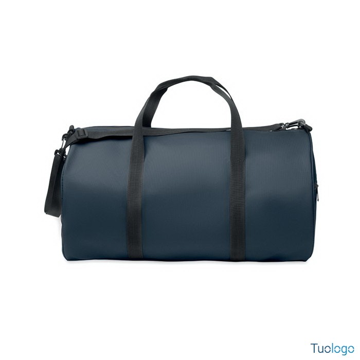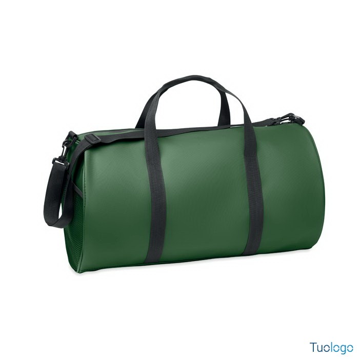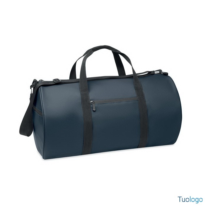 Borsone in poliestere Kapan. Borsone in poliestere 600D RPET con rivestimento in PU. Tasca frontale con cerniera. Fodera interna in poliestere 210D RPET. Dimensioni: 51x28 cm. 1 scomparto laterale con cerniera / 1 scomparto laterale in rete. Tasca interna con cerniera.