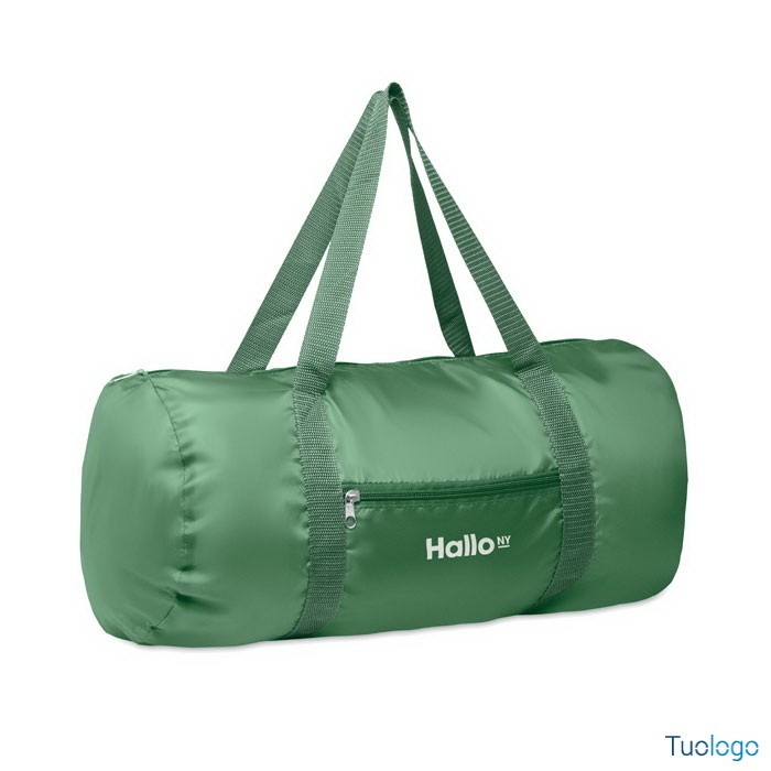 Borsone in poliestere La Embocada. Borsone in poliestere RPET 190T con tasca con cerniera sul lato anteriore. Capacità 20L.. Dimensioni:cm 48x23.
