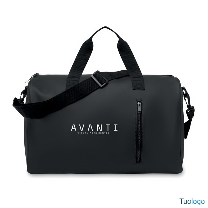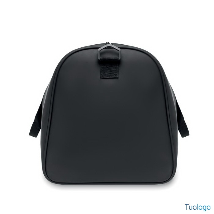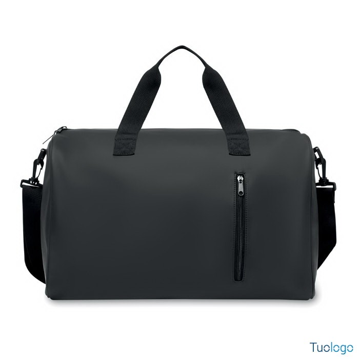 Borsone in PU con fondo rinforzato Siki. Borsone in morbido PU con fondo rinforzato in schiuma. Uno scomparto principale, tasca frontale con cerniera. Fodera in poliestere 210D RPET. 2 manici e una tracolla regolabileDimensioni:cm 44x27x2.