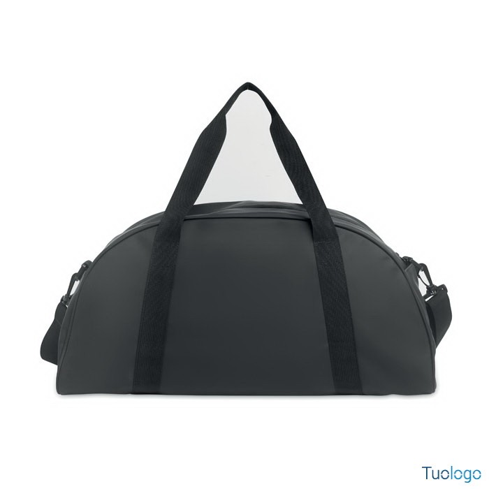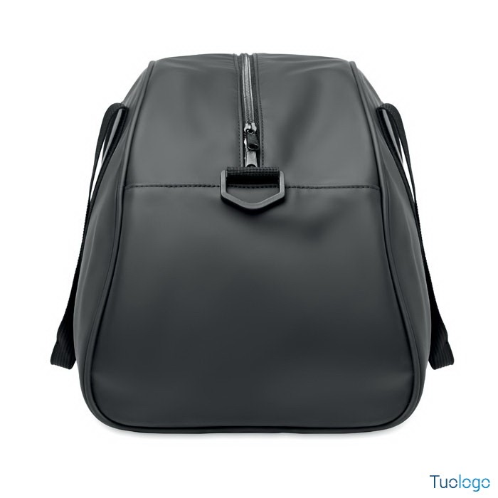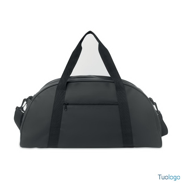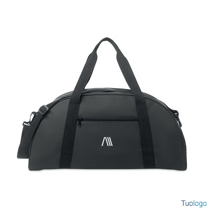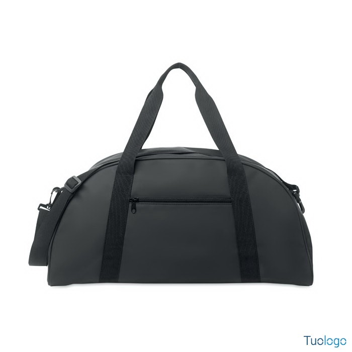 Borsone in PU con fondo rinforzato Uribia. Borsone in morbido PU con fondo rinforzato in schiuma. Uno scomparto principale, tasca frontale con cerniera e tasca interna con cerniera. fodera in poliestere 210D RPET.Dimensioni:cm 53x29x23.