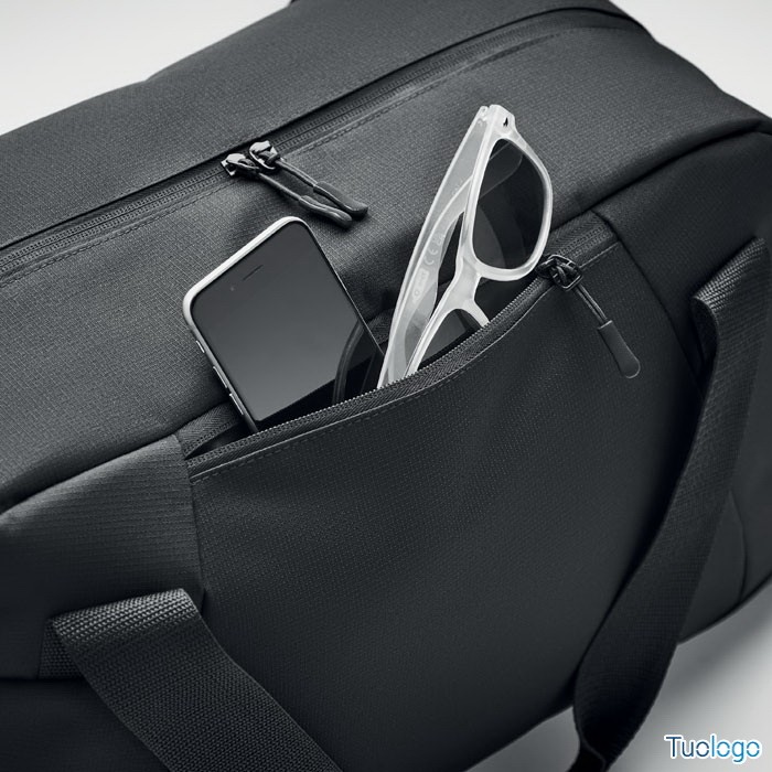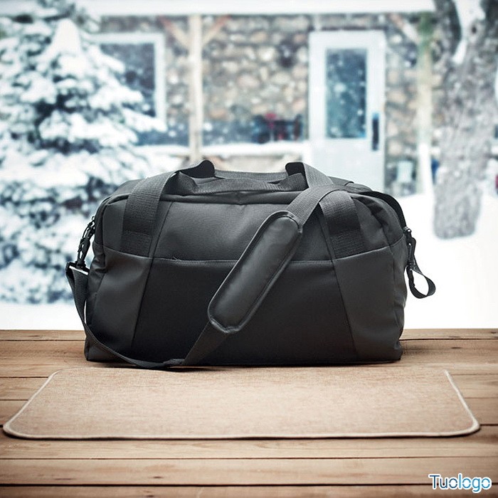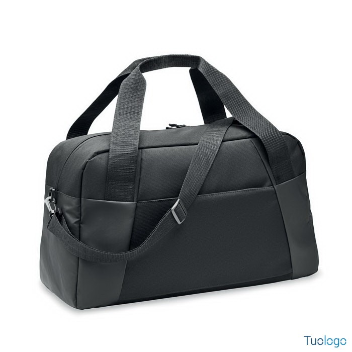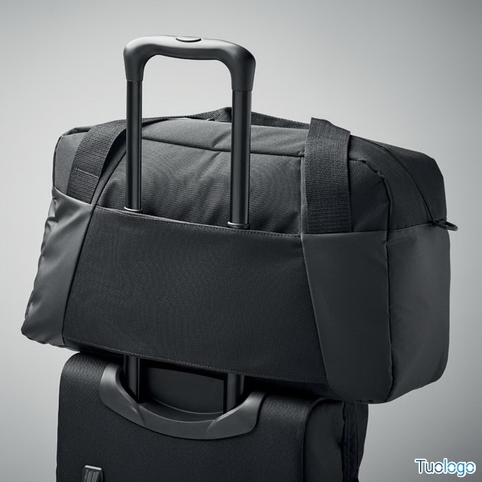 Borsone sportivo da viaggio. In 300D ripstop, dettagli in PU, tasca frontale con cerniera, tasca intena e 2 piccoli scomparti imbottiti. Porta trolley sul lato posteriore. Dimensioni: cm 49x20x29.