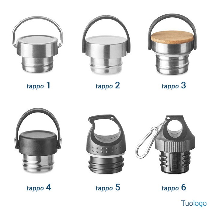 Bottiglia 500 ml su misura Nasca. In acciaio inossidabile, colore a pantone, stampa quadricromia 360 gradi, 6 varianti di tappo. Confezionato in polybag. Dimensioni: diam cm 7,3x19 (escluso tappo). Su richiesta confezione in cartoncino bianco o personalizzata e tappo a colore pantone.