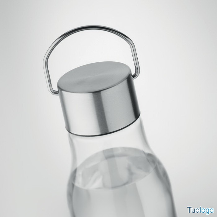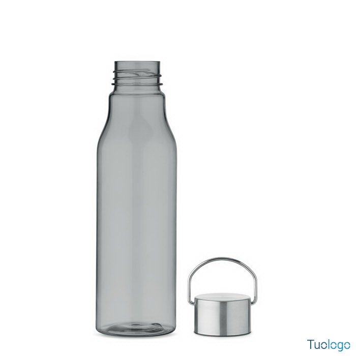 Bottiglia 600 ml Rpet. In RPET senza BPA, tappo in acciaio inox con impugnatura sul tappo. Capacità 600 ml. Dimensioni: diam cm 6x23.
