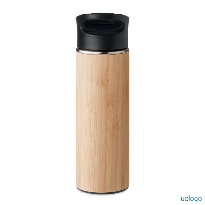 Bottiglia termica 450 ml Fabiasco. In bamboo, doppio strato isolante in acciaio inossidabile, con tappo in PP. Dimensioni: cm 7x26. FSC®-certified | FSC 100%, N5.7, FSC-C213206