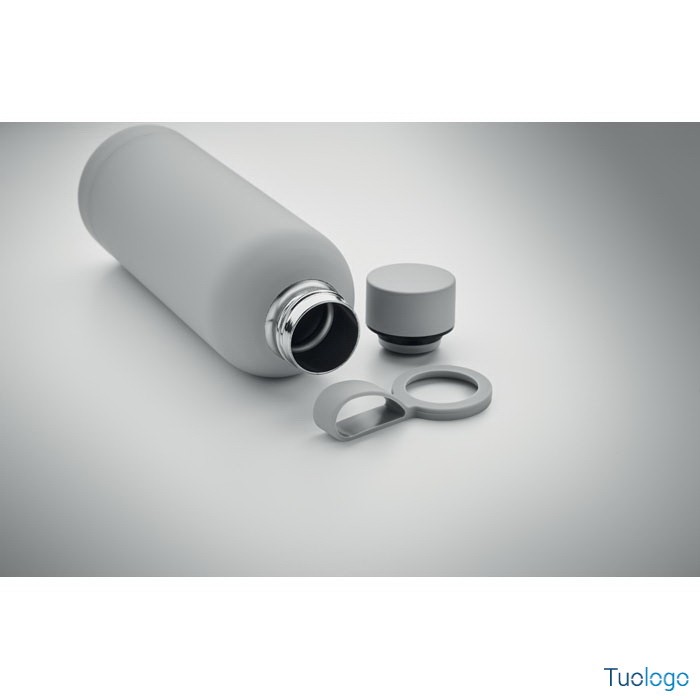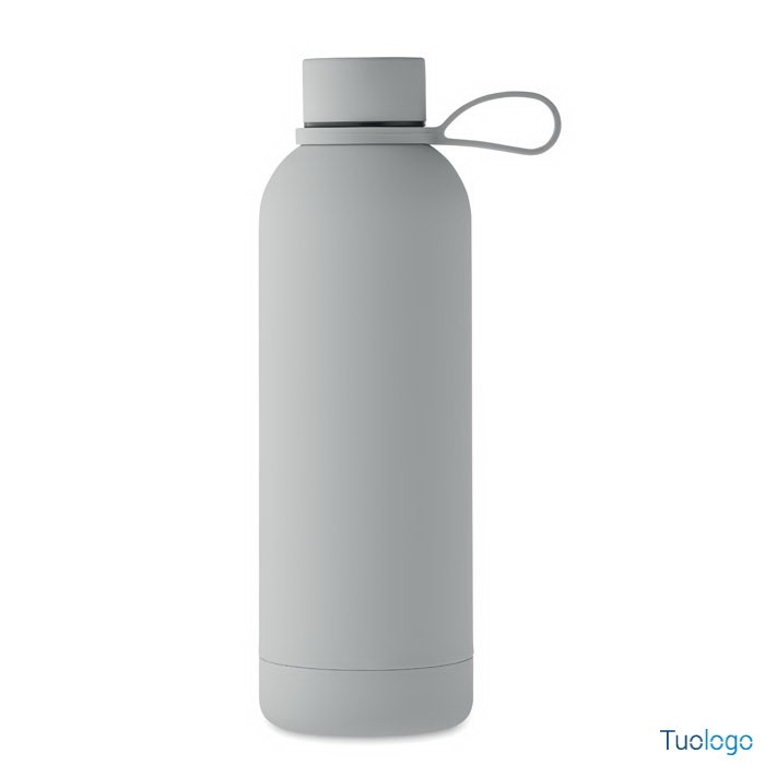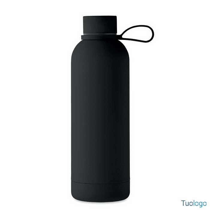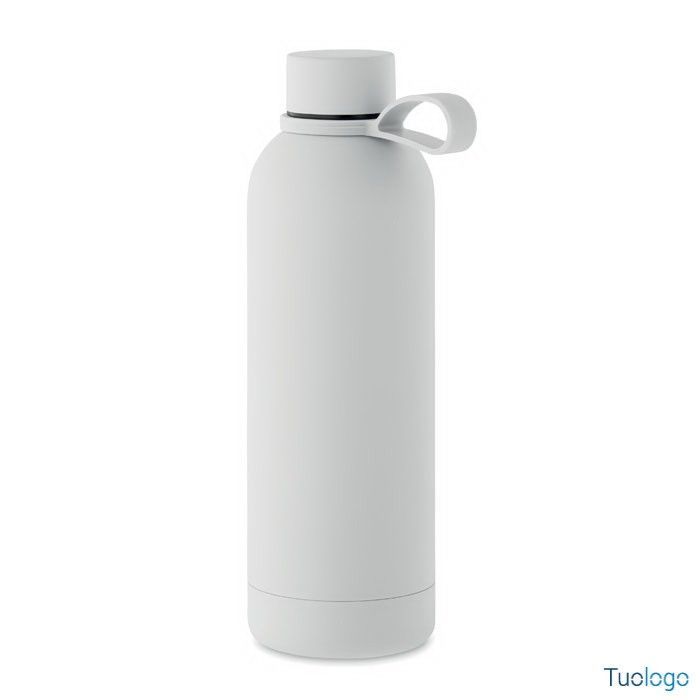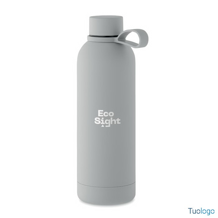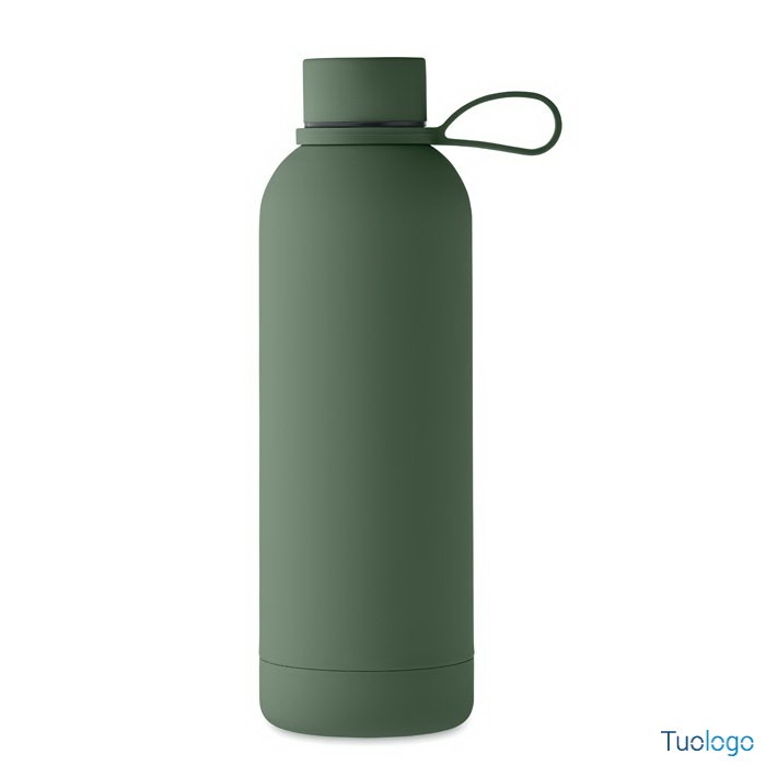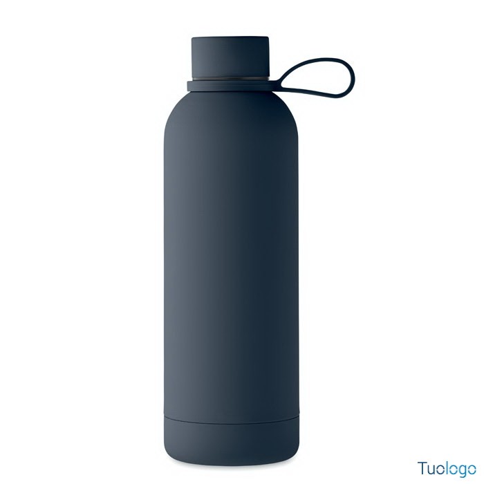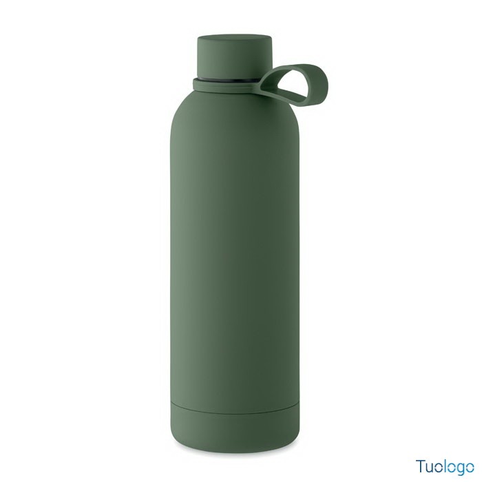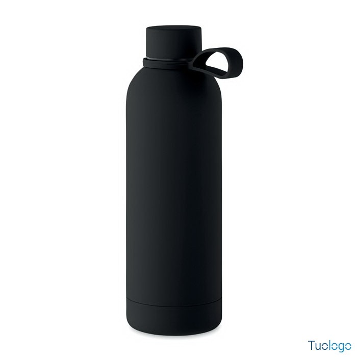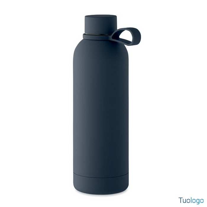 Bottiglia termica 500 ml Alomba. Bottiglia isolante doppio strato in acciaio inox riciclato, 90% acciaio inox riciclato e 10% acciaio inox, con finitura in gomma e manico in silicone. 500 ml. Dimensioni: cm 7x22,5.