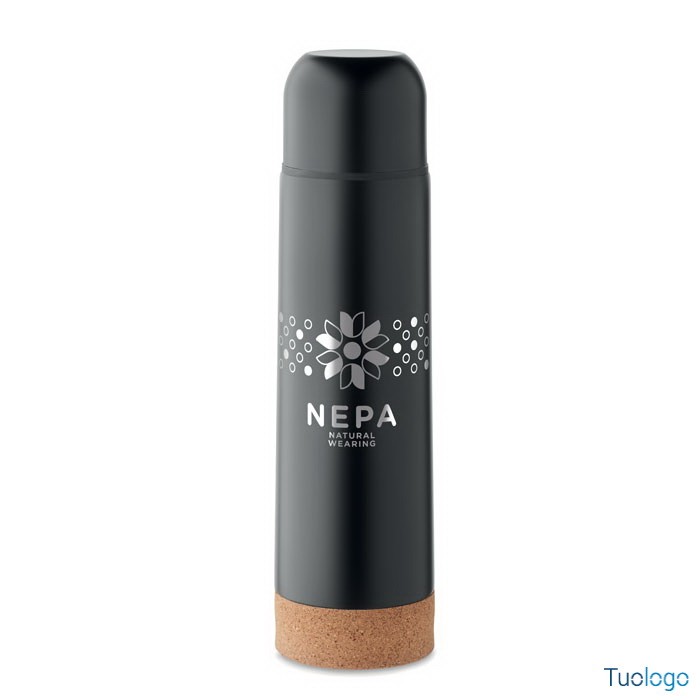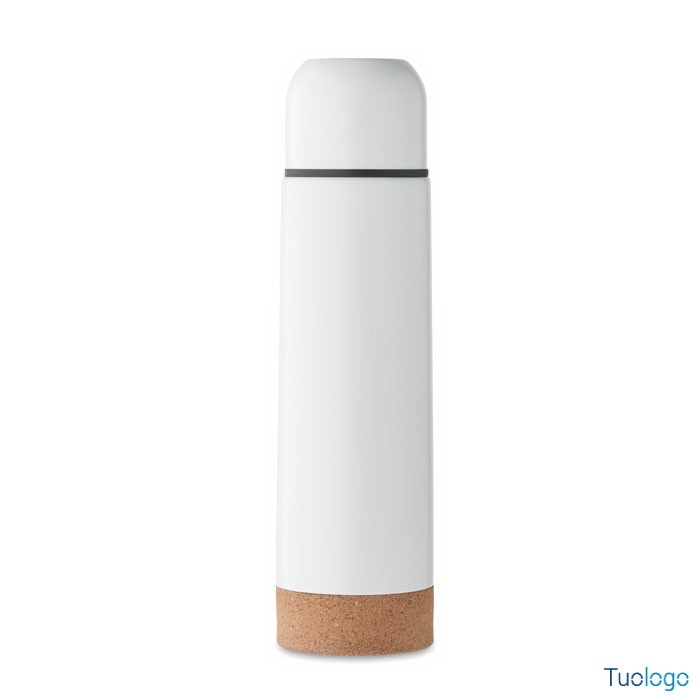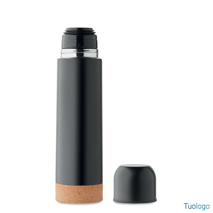 Bottiglia termica 500 ml Osani. Thermos isolata sottovuoto a doppio strato in acciaio inox riciclato con base in sughero. Senza perdite. Capacità: 500 ml. Dimensioni: diam cm 6,5x25.