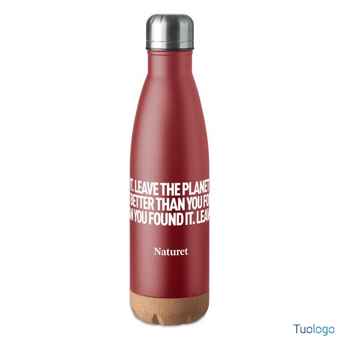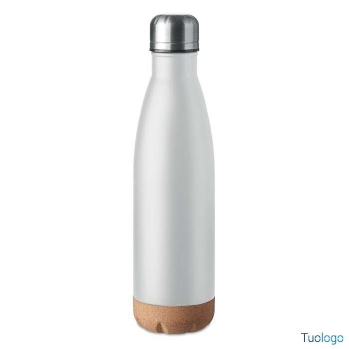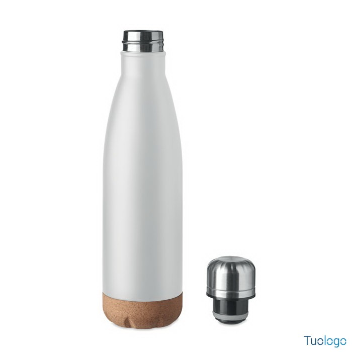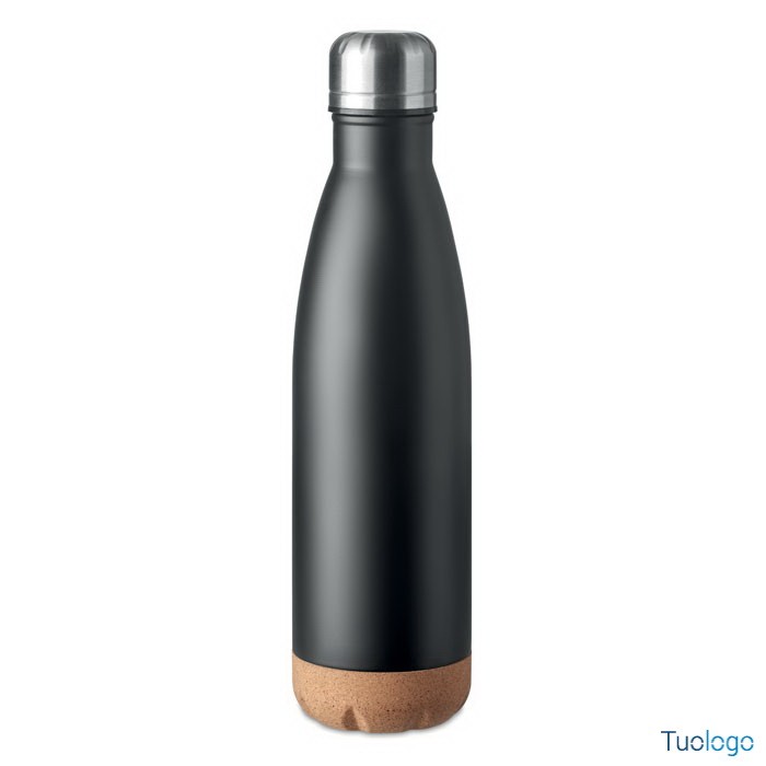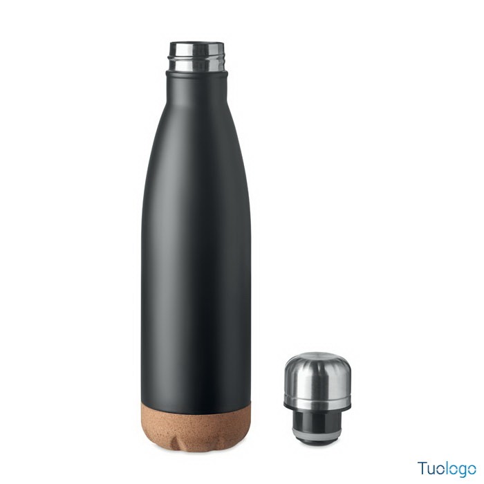 Bottiglia termica 500 ml Sindara. Thermos doppio strato in acciaio inossidabile con dettaglio in sughero sul fondo. Questo thermos manterrà le bevande calde o fredde tutto il giorno. 500ml. Dimensioni: cm 6,5x27.