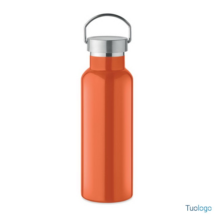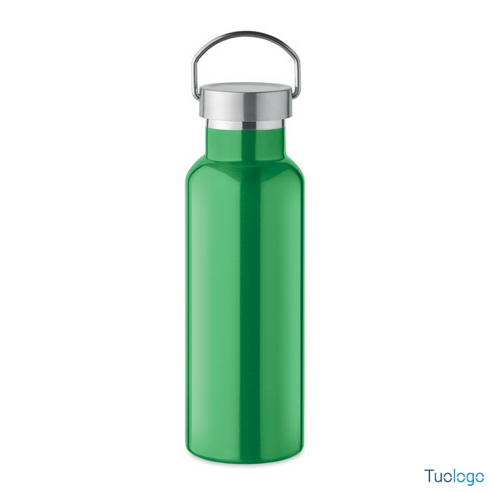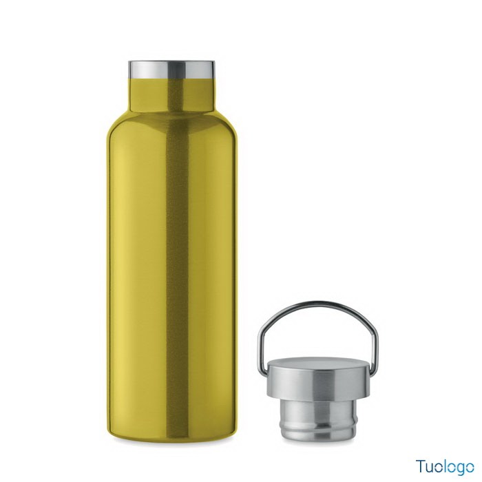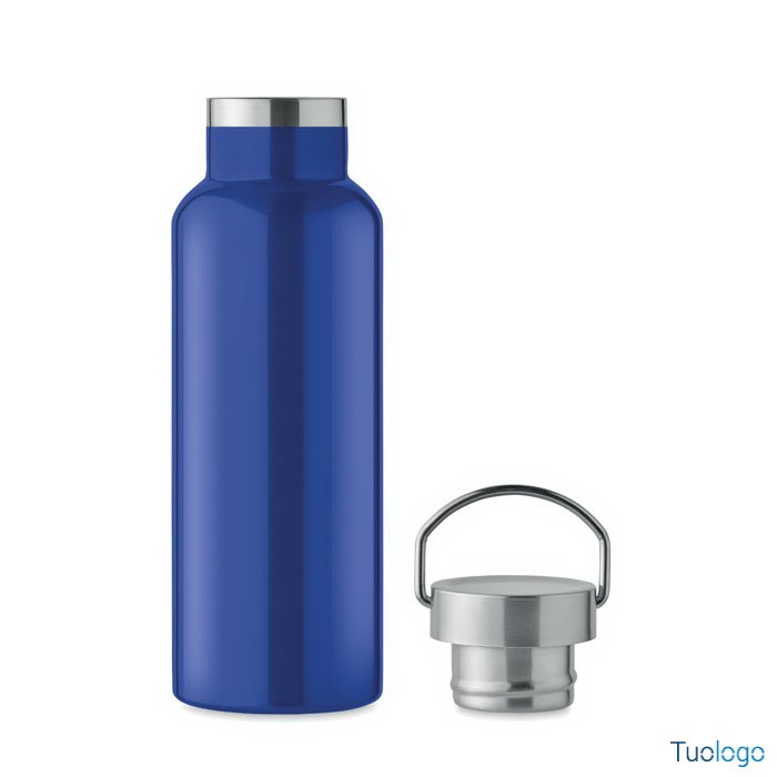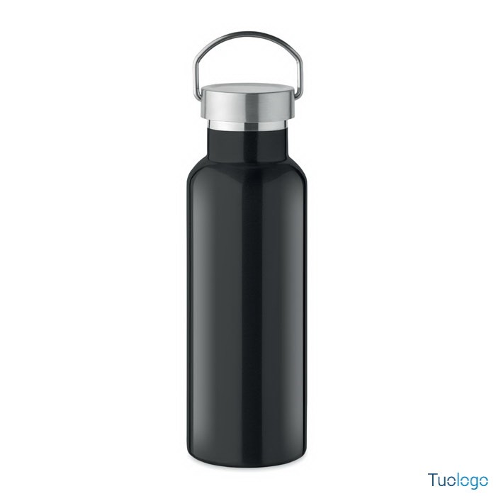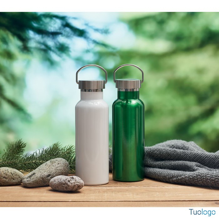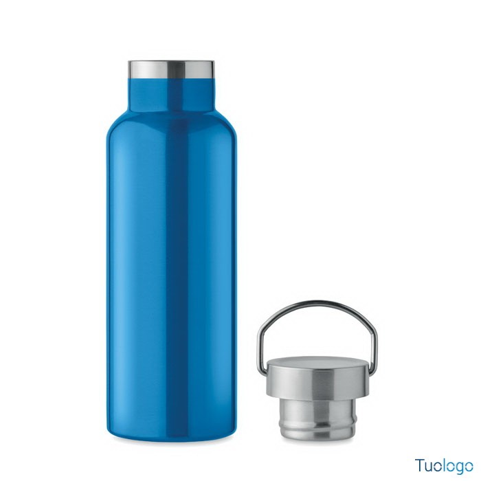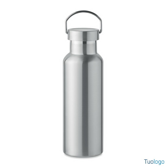 Bottiglia termica 500ml Lifuti. Bottiglia sottovuoto isolante a doppio strato in acciaio inox riciclato con coperchio e manico. 500 ml. Dimensioni: diam cm 7x21,5.