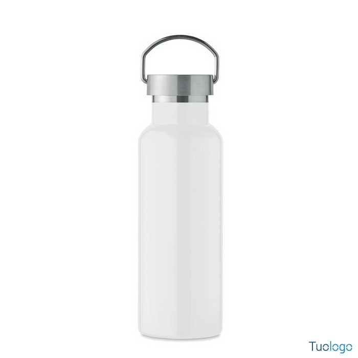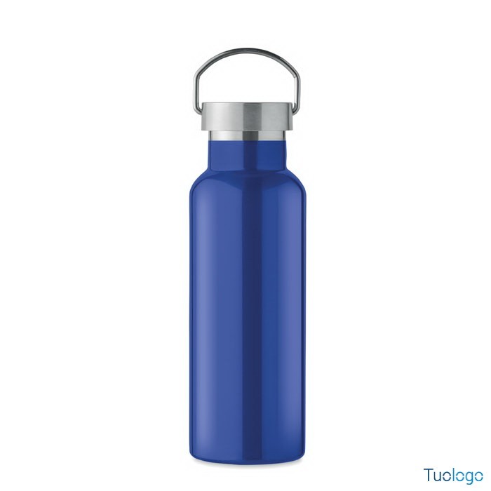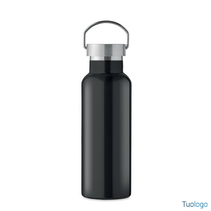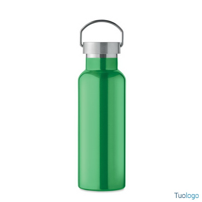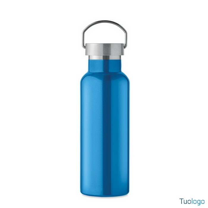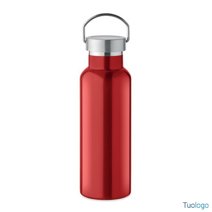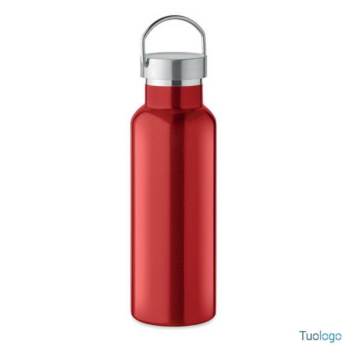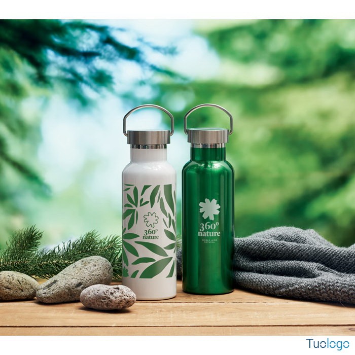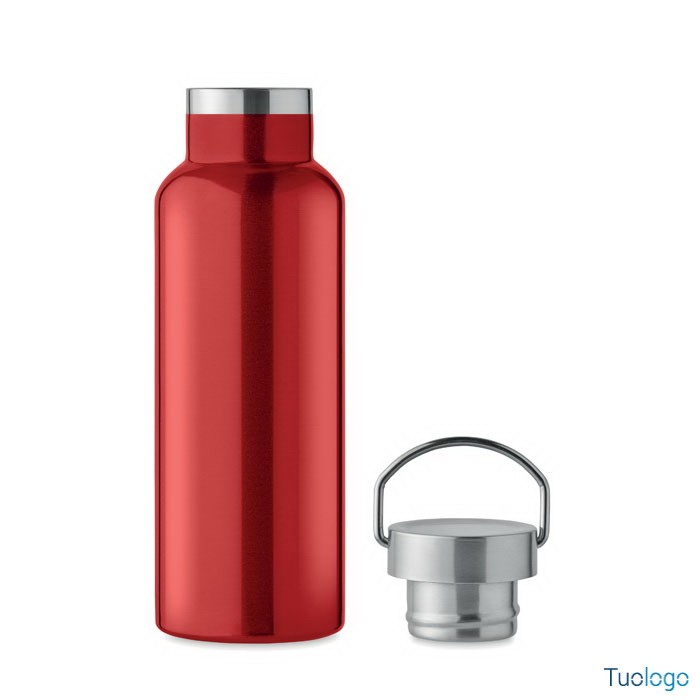 Bottiglia termica 500ml Lifuti. Bottiglia sottovuoto isolante a doppio strato in acciaio inox riciclato con coperchio e manico. 500 ml. Dimensioni: diam cm 7x21,5.