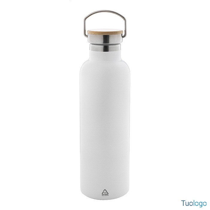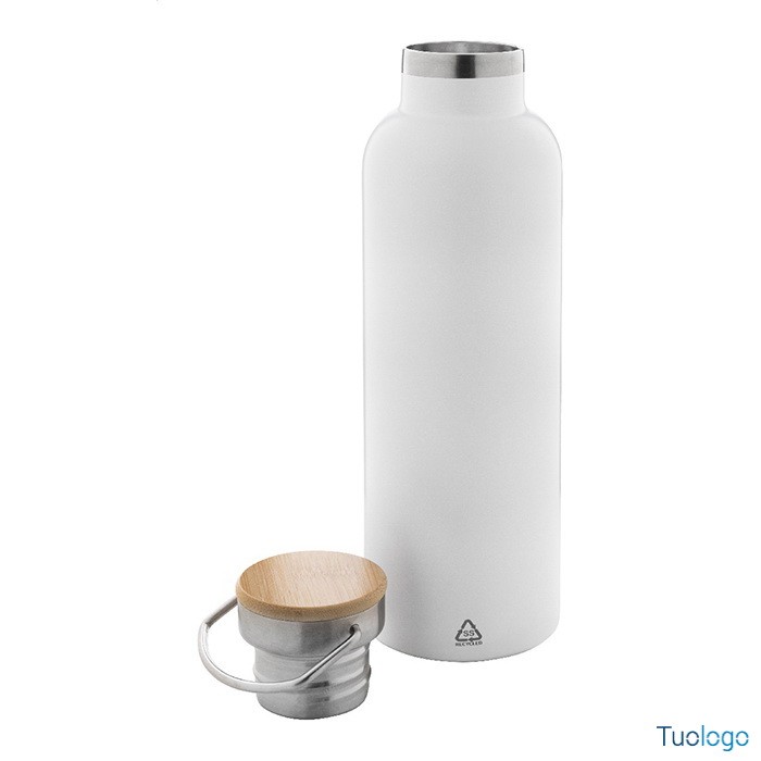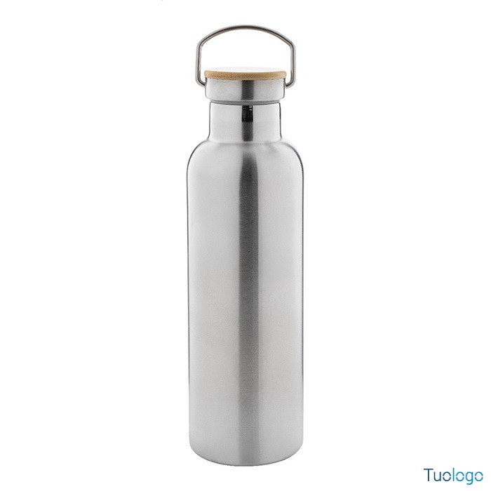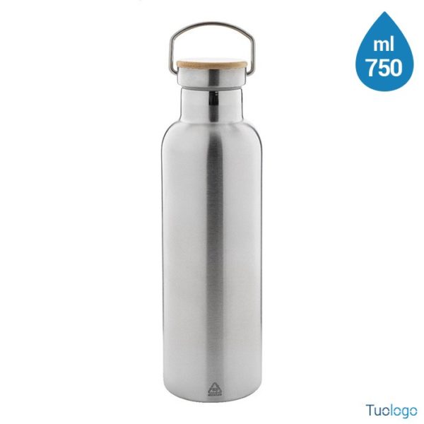 Bottiglia termica Sezer. Borraccia con isolamento a doppia parete da 750ml. in acciaio riciclato e coperchio in bamboo. Dimensioni: cm 7,5x26.